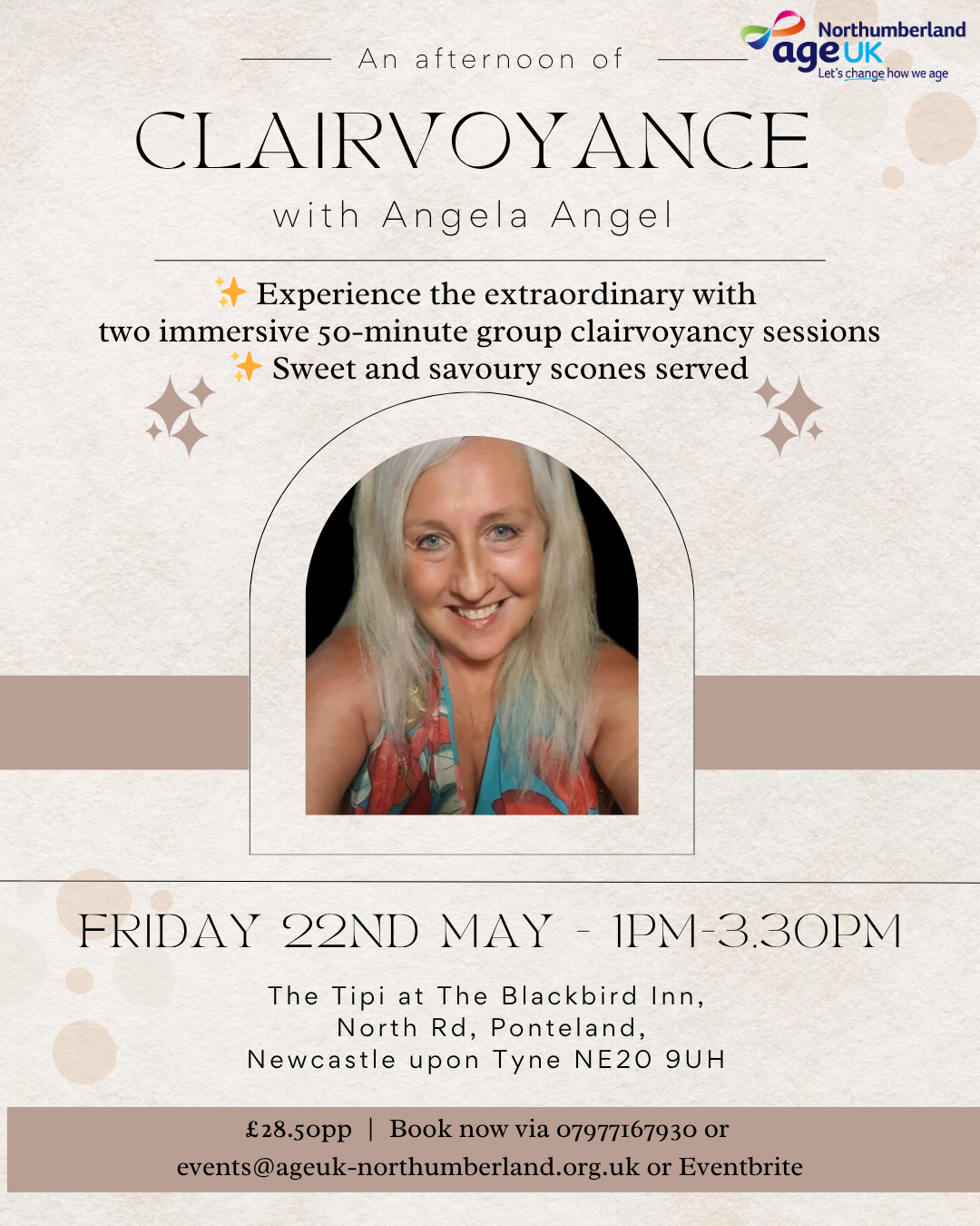 Join us for a mystical Clairvoyant Afternoon led by the wonderful Angela, an experienced clairvoyant, offering a workshop filled with insight, connection, and spiritual guidance on Friday 22nd May in The Tipi at The Blackbird Inn, Ponteland.