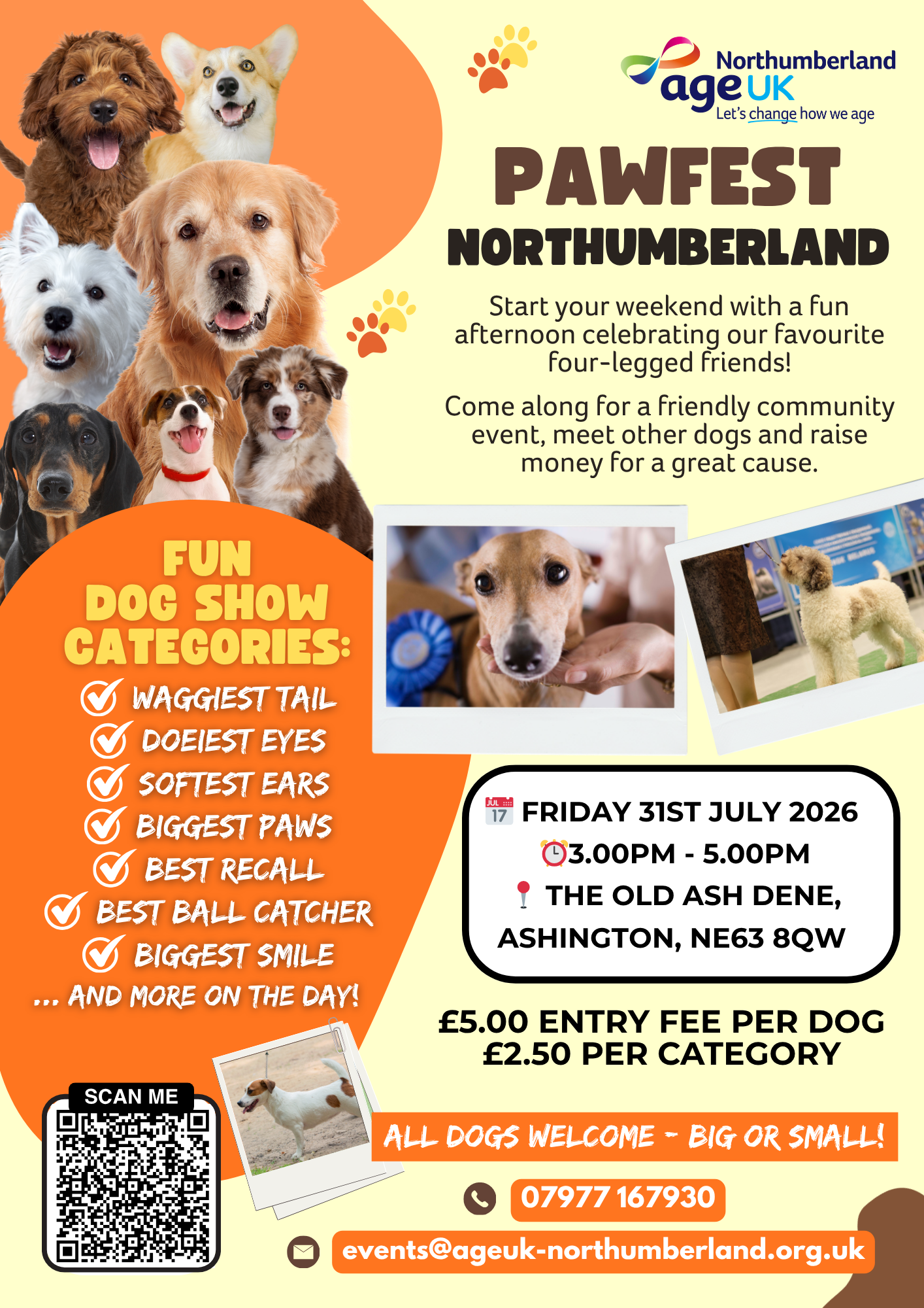 We’re delighted to be hosting Pawfest Northumberland at the Old Ash Dene on Friday 31st July 2026 from 3pm-5pm. Get ready for an afternoon full of fun, with plenty of exciting categories for your gorgeous dogs to enter, and some fantastic prizes up for grabs! π€©