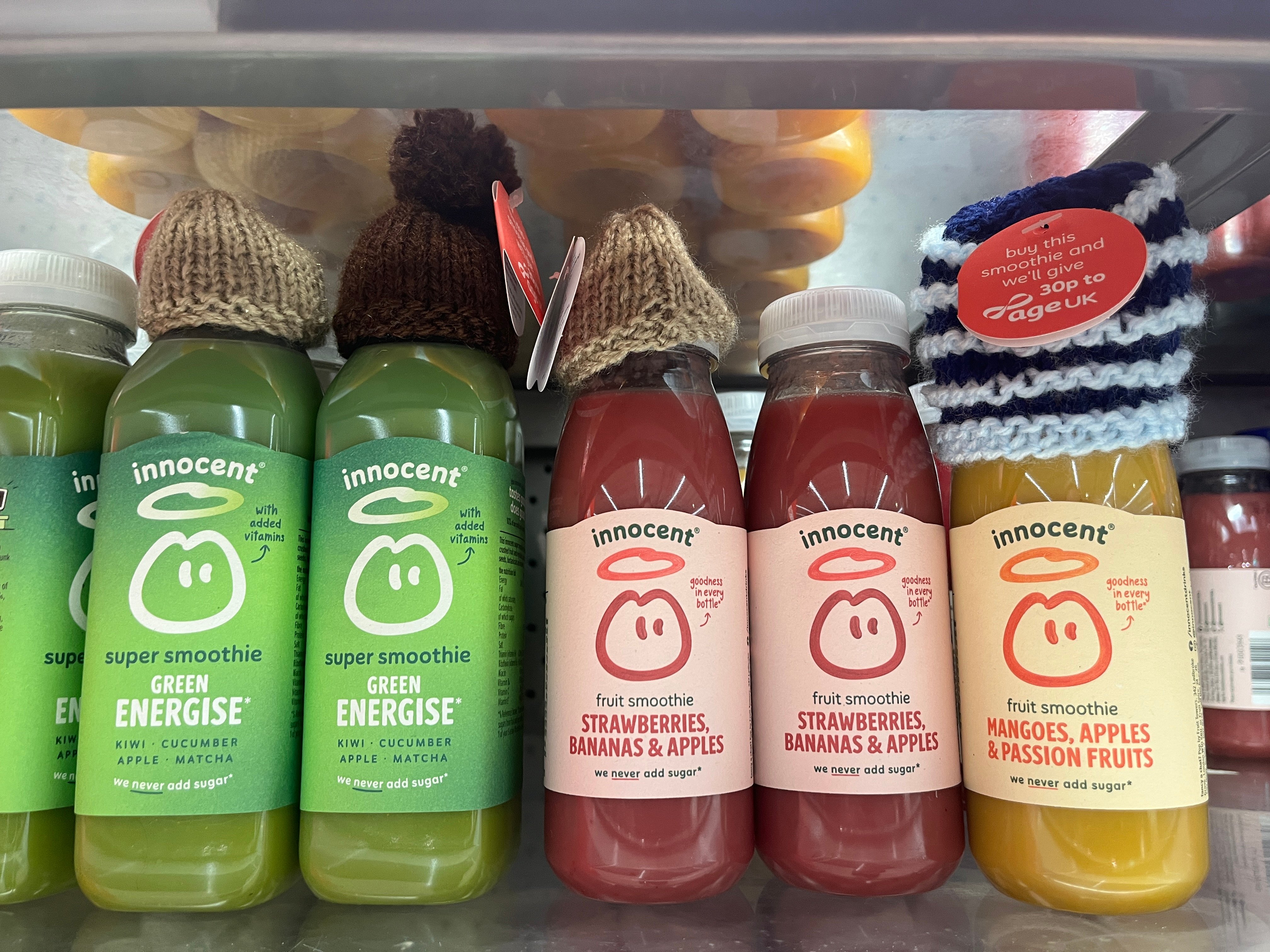 Look out for the innocent smoothie bottles topped with your hats — now available in Sainsbury's and Co-op stores nationwide.
