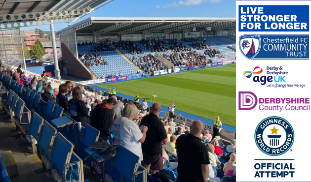 On Thursday 25 September 2025 Age UK Derby and Derbyshire and its Falls Prevention Service: Live Stronger for Longer with Chesterfield FC Community Trust brought 1,200 people together at Chesterfield FC’s stadium to attempt to break the Guinness World Record for the largest chair-based exercise session.