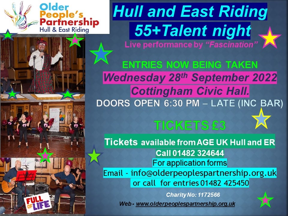 Are you aged over 55? Live in Hull or the East Riding? Do you have a talent whether it is singing, dancing, or comedy? Then WE NEED YOU!