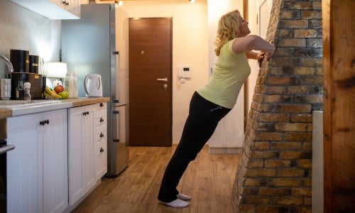 How? Place your hands on a wall, lower your chest towards it, then push back up. Repeat 10-15 times.