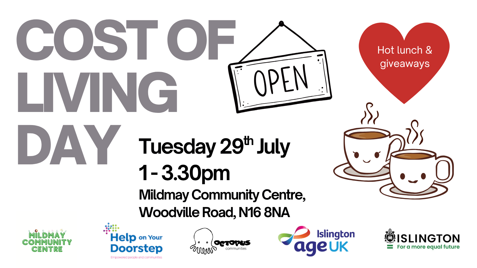 Organised by Help on Your Doorstep, Octopus Community Centres and Age UK Islington, there will be practical help and advice about energy bills, debt and other issues, with support and information to take away. Hot food and refreshments will be available, plus some give-aways.