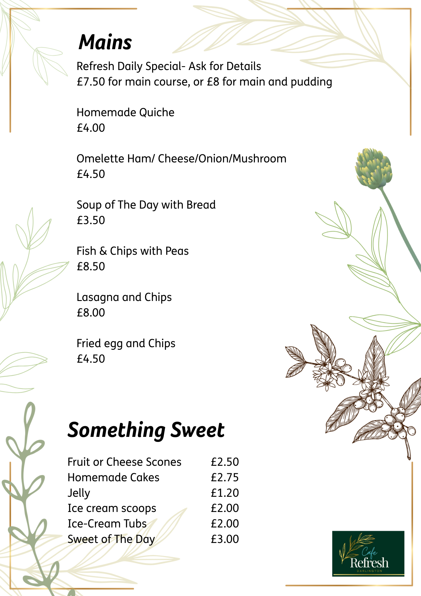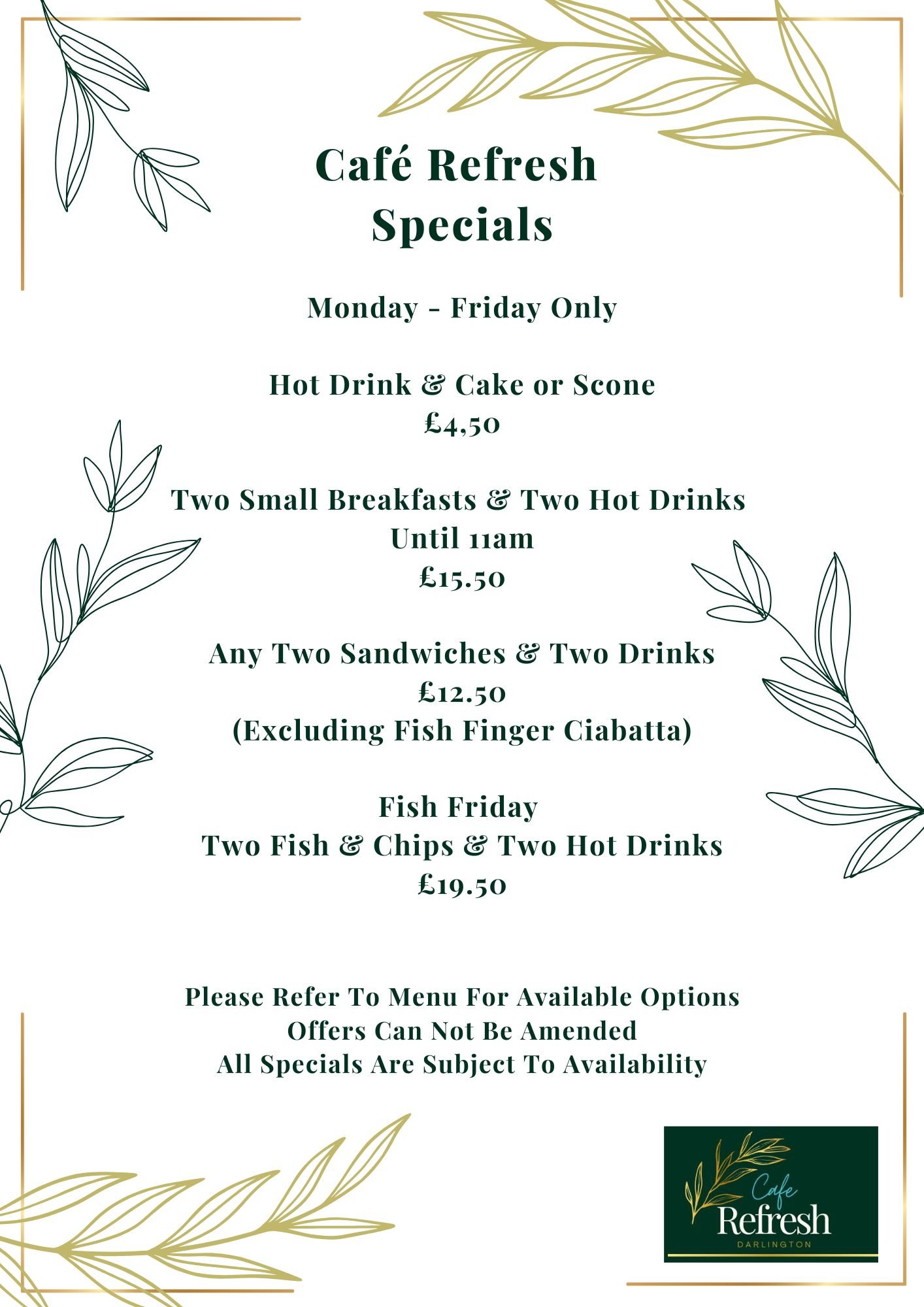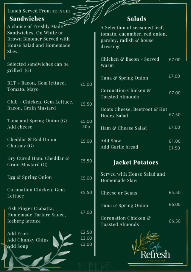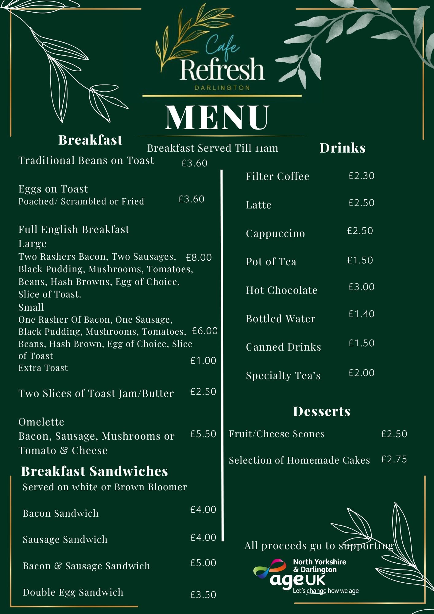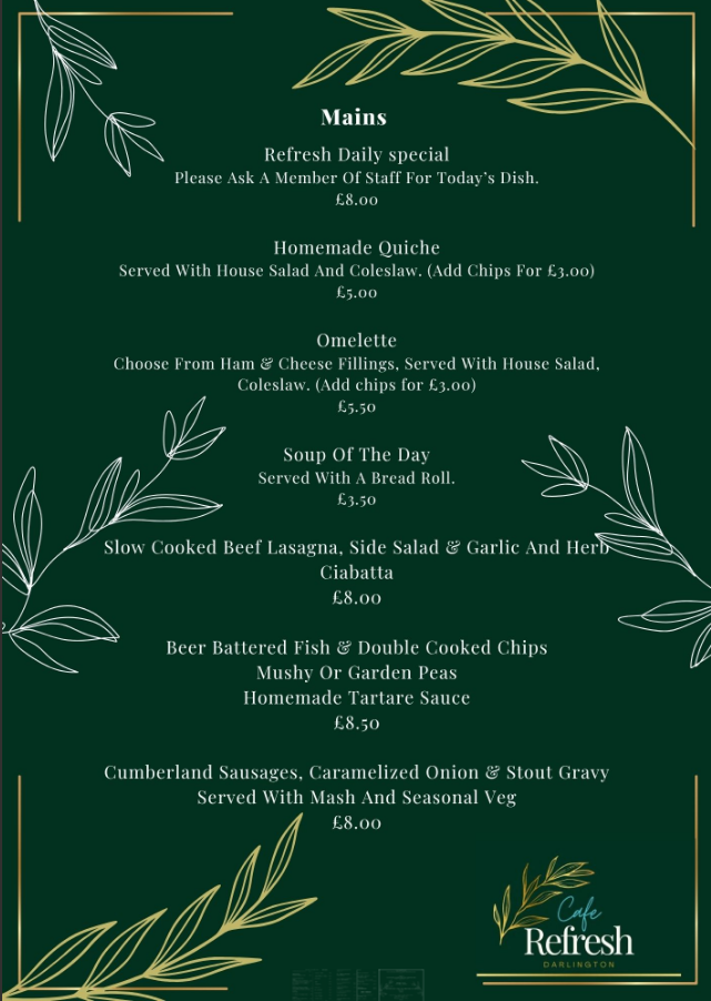 Café Refresh is our friendly and accessible community café, nestled at the heart of our centre you'll be guaranteed a friendly welcome, delicious and reasonably priced food and drink. Our menu includes cooked breakfasts, a daily hot special, jacket potatoes, our homemade quiche and a variety of sandwiches. All of our cakes and scones are made fresh in our own kitchen from traditional recipes.