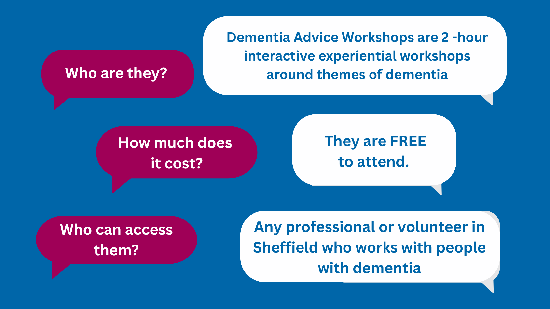 The Dementia Advice Service workshops are delivered by Enrichment for the Elderly in partnership with Age UK Sheffield for Dementia Advice Sheffield.