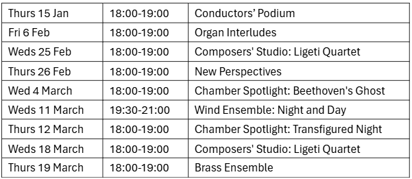 - 9th January 2026, 12.00pm – 4.00pm, David Wolf Kaye room, Wigmore Hall, 36 Wigmore Street