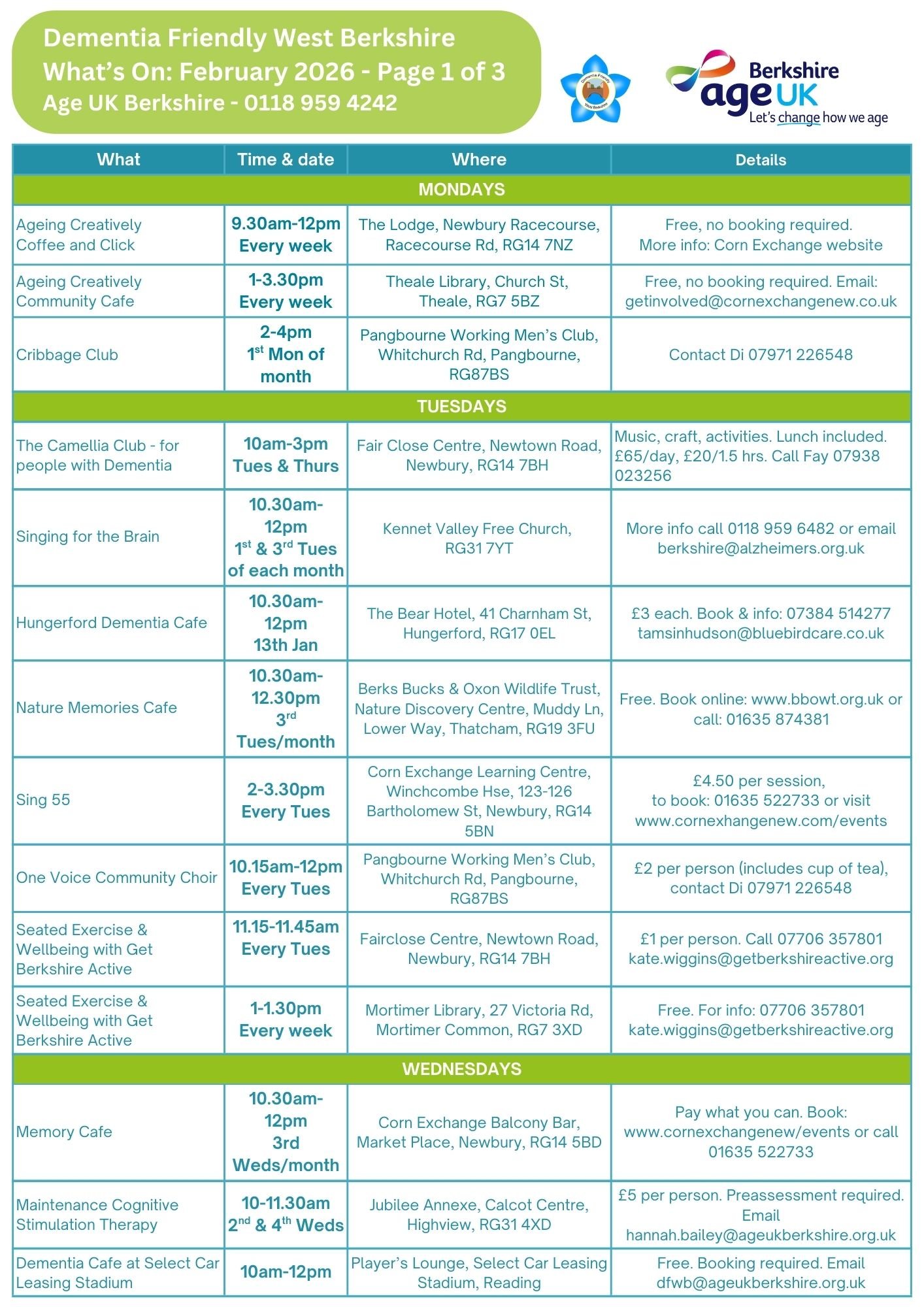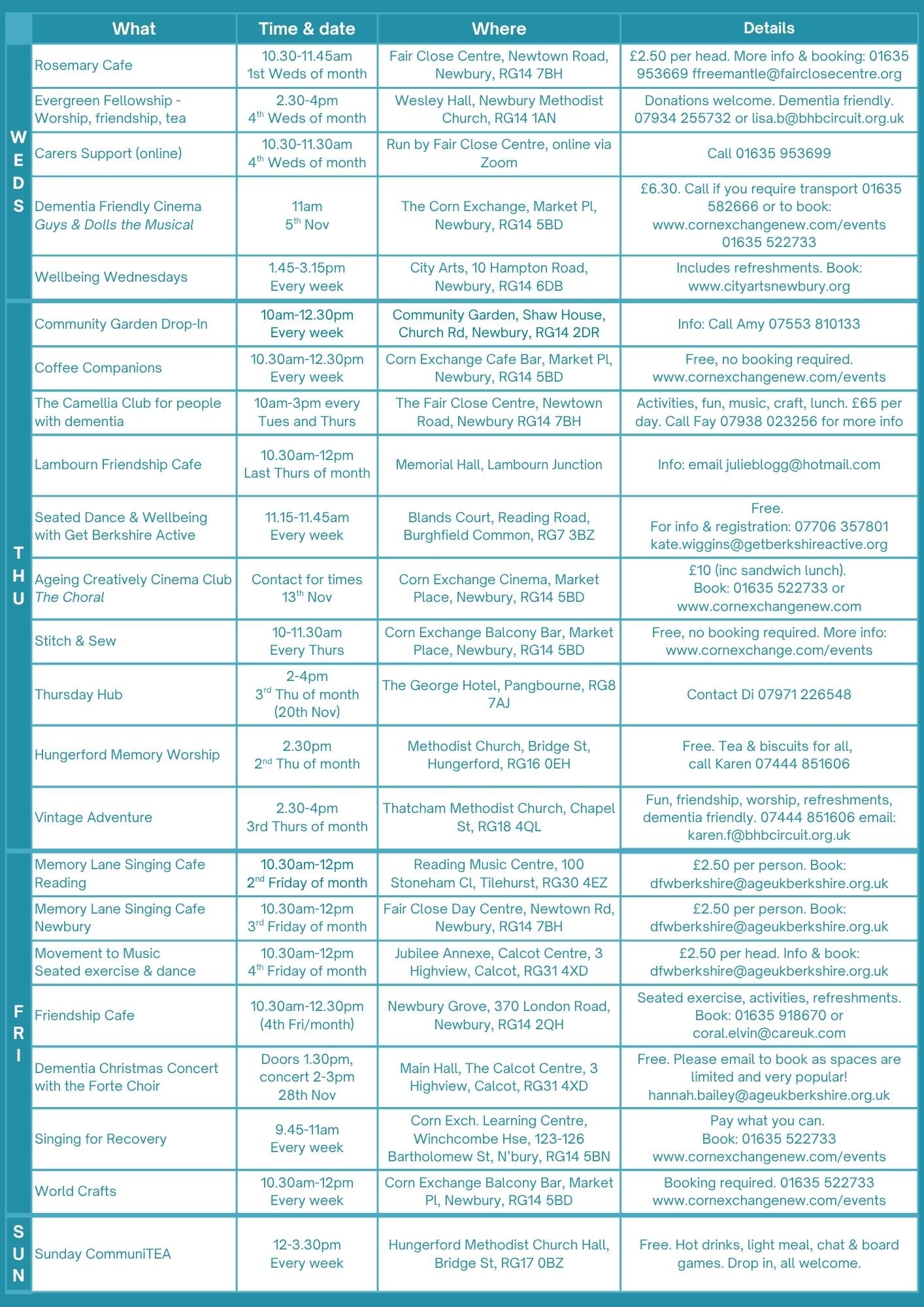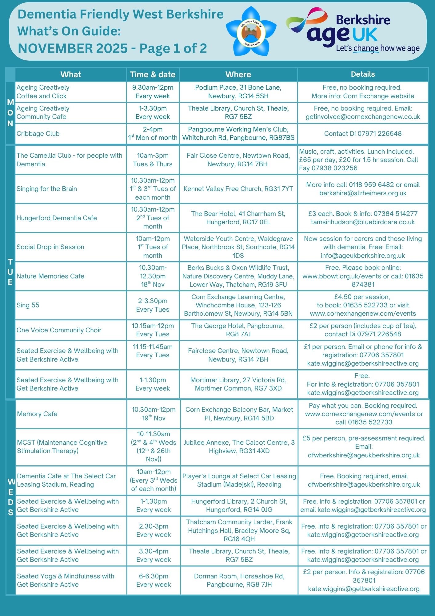 We have lots of activities and events for older people in West Berkshire. Delivered by Age UK Berkshire and Dementia Friendly West Berkshire and also by our trusted partners. All staff are trained, experienced and DBS-checked.