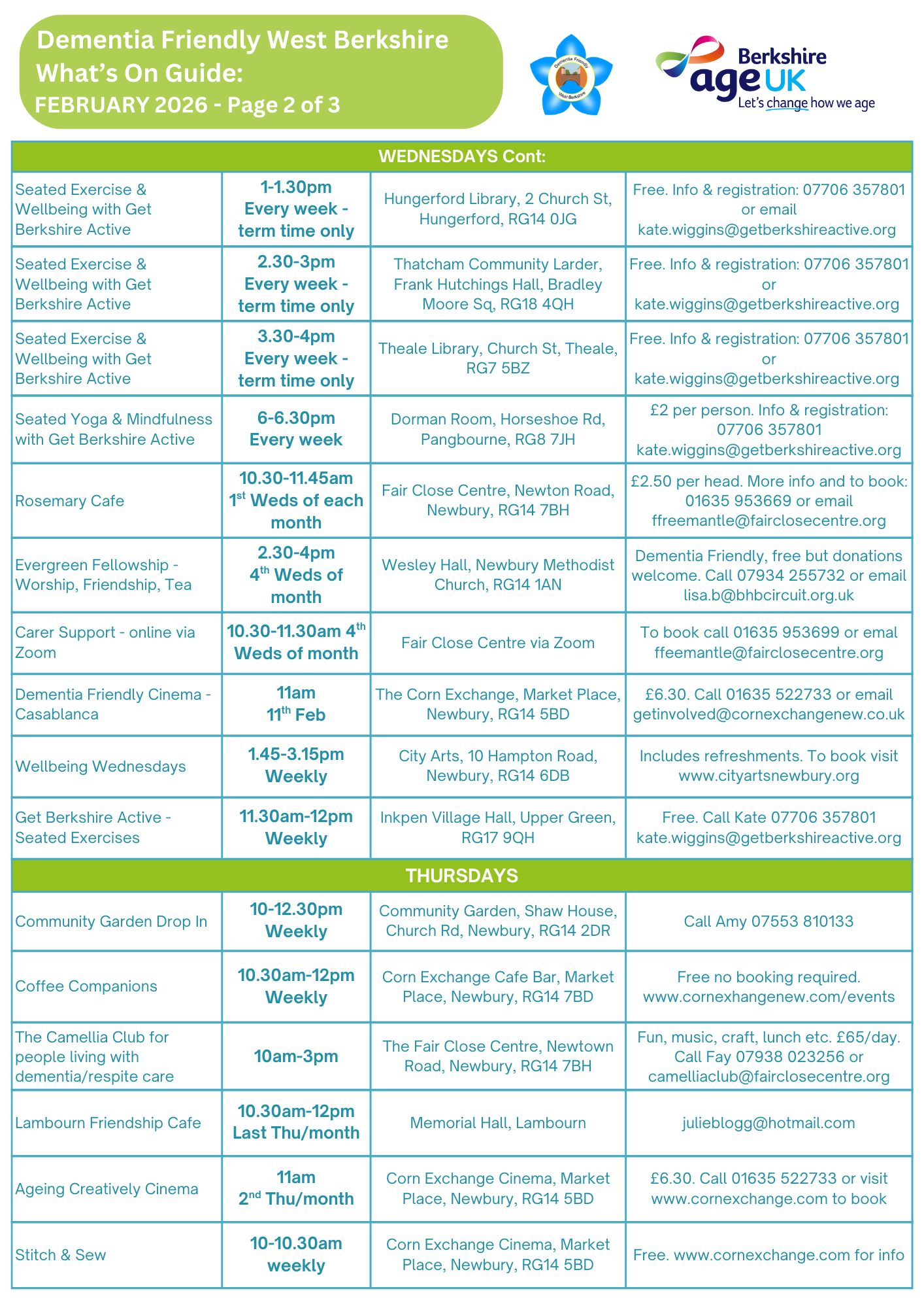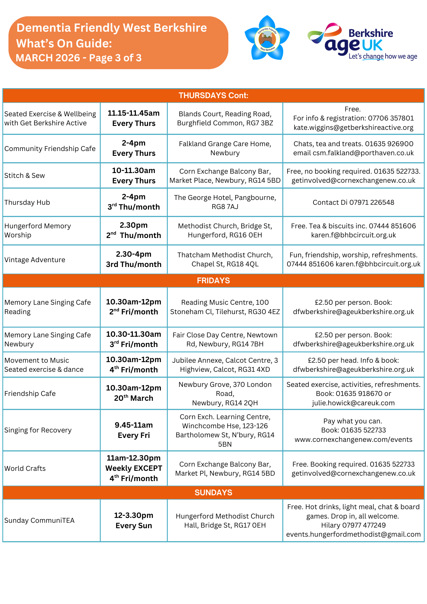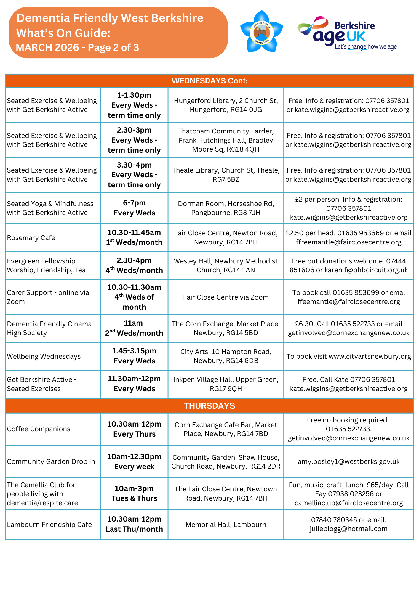 We have lots of activities and events for older people in West Berkshire. Delivered by Age UK Berkshire and Dementia Friendly West Berkshire and also by our trusted partners. All staff are trained, experienced and DBS-checked.