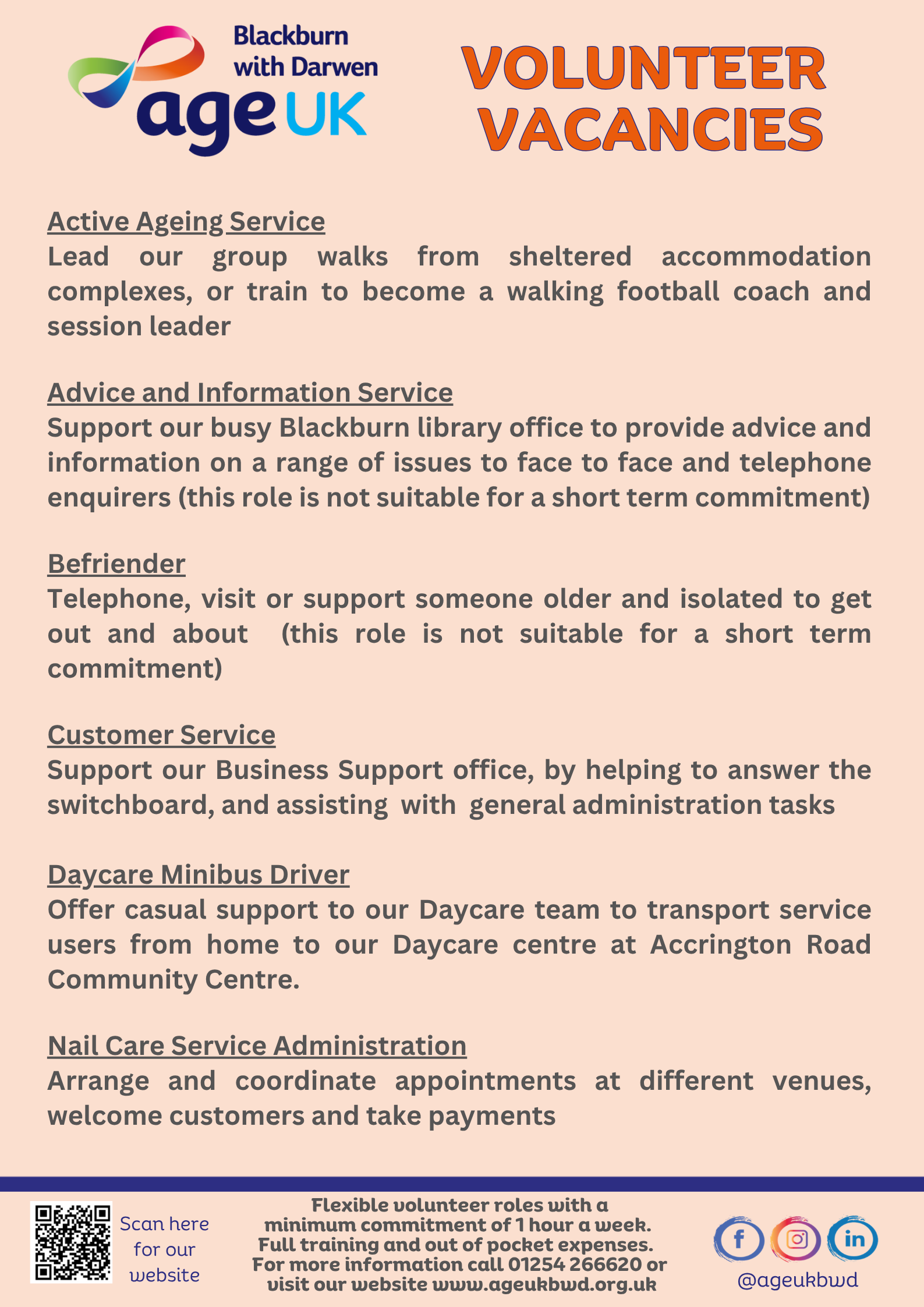 - You get to be part of Age UK Blackburn with Darwen's volunteer team