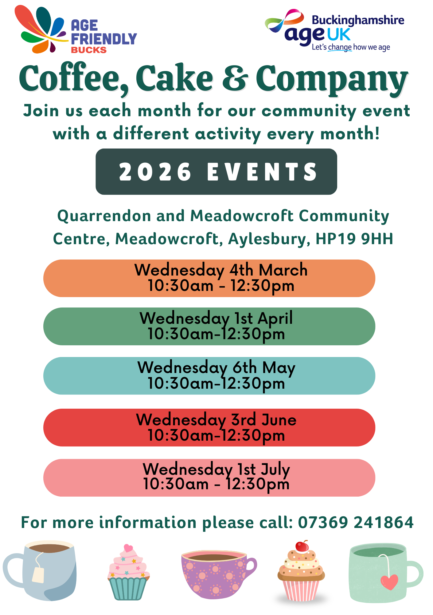 Join us at Quarrendon and Meadowcroft Commmunity Centre each month to enjoy a fun activity, free tea, coffee and refreshments, and the company of friendly faces.