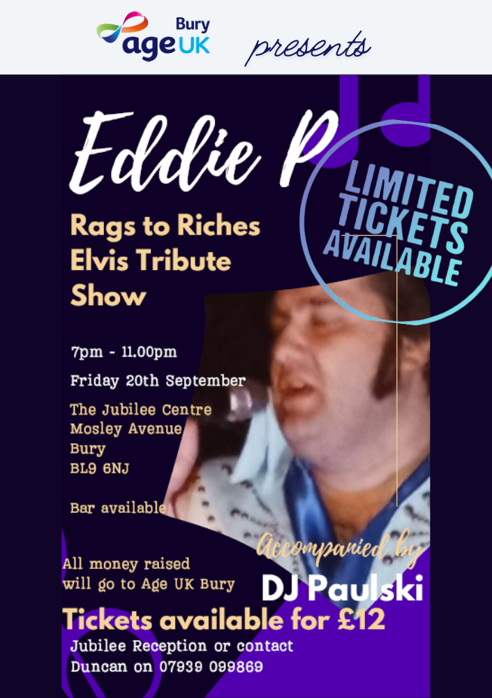All profits from events goes to supporting people aged 50+ in Bury and surrounding boroughs