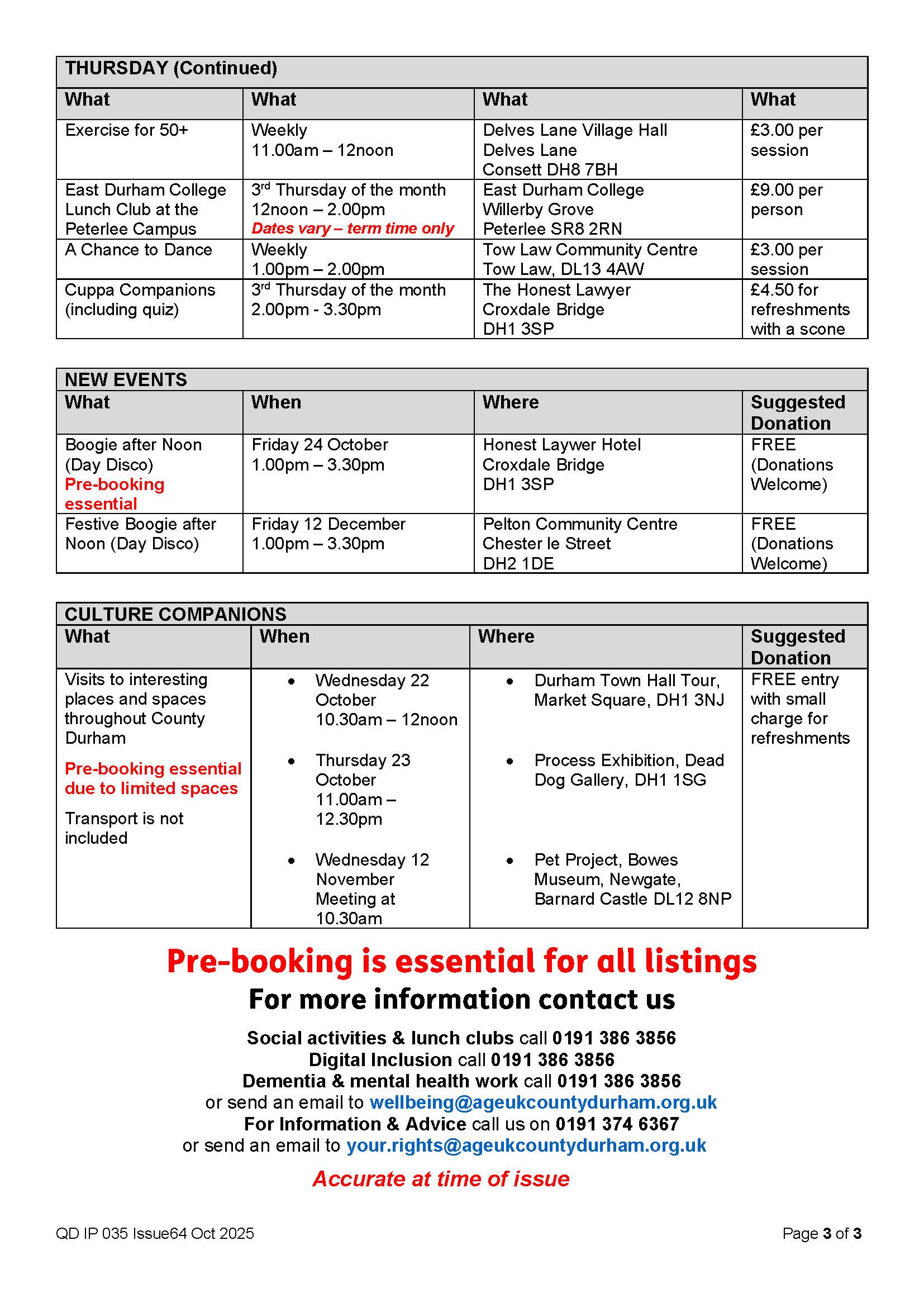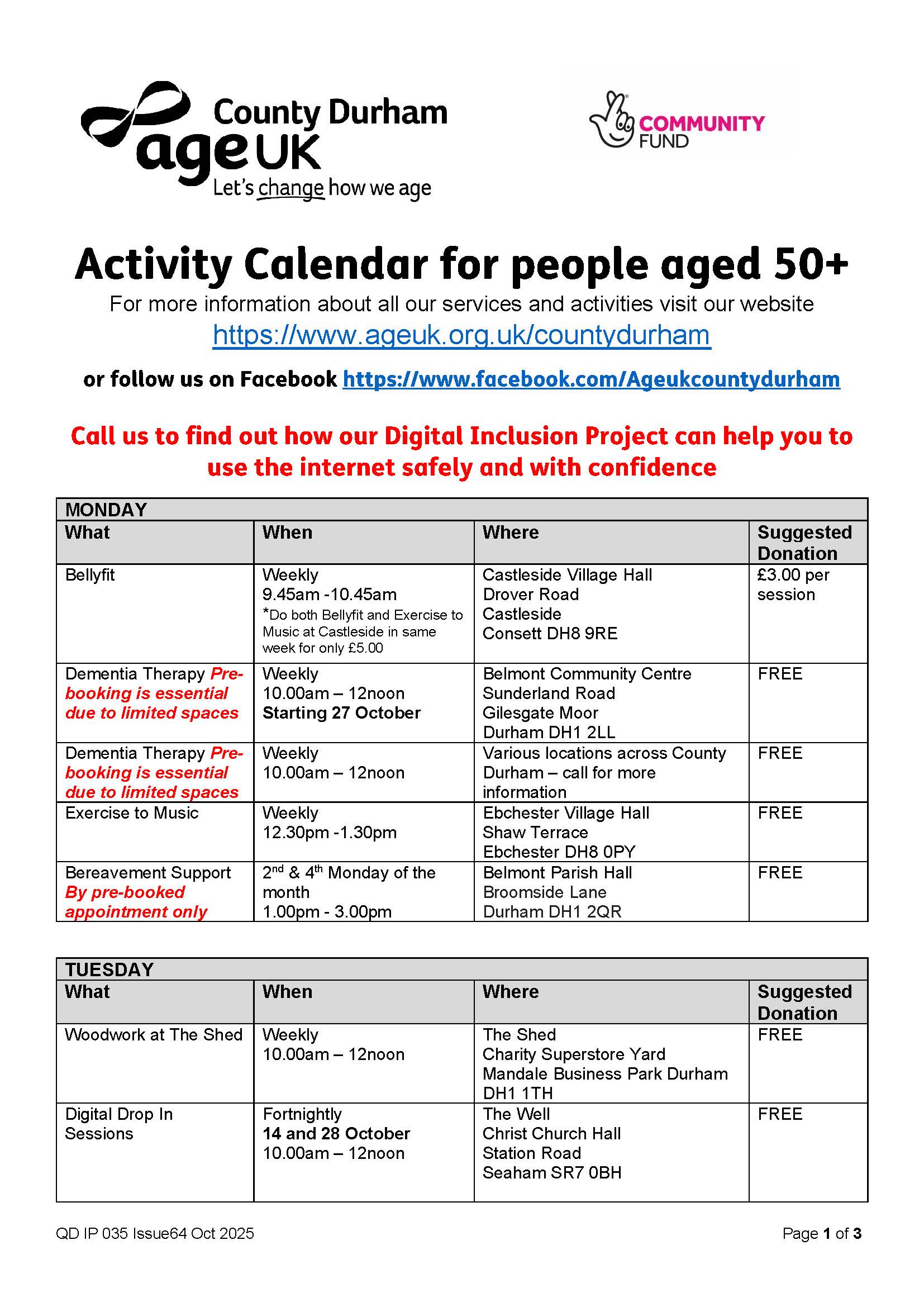 You can contact us on 0191 386 3856 or by email at info@ageukcountydurham.org.uk if you would like any additional information.