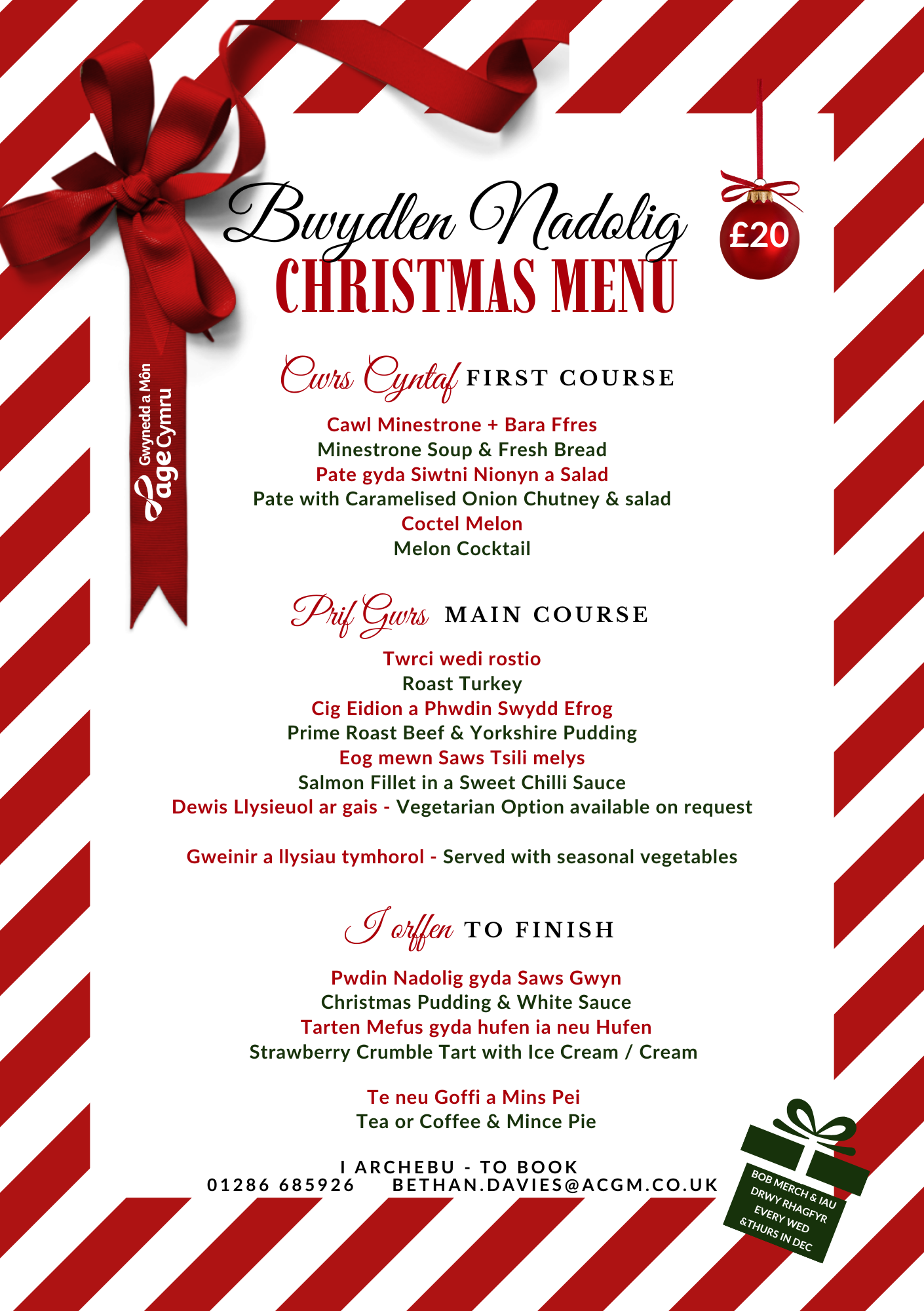 Ffoniwch 01286 685926 neu e-bostiwch bethan.davies@acgm.co.uk am fwy o wybodaeth.