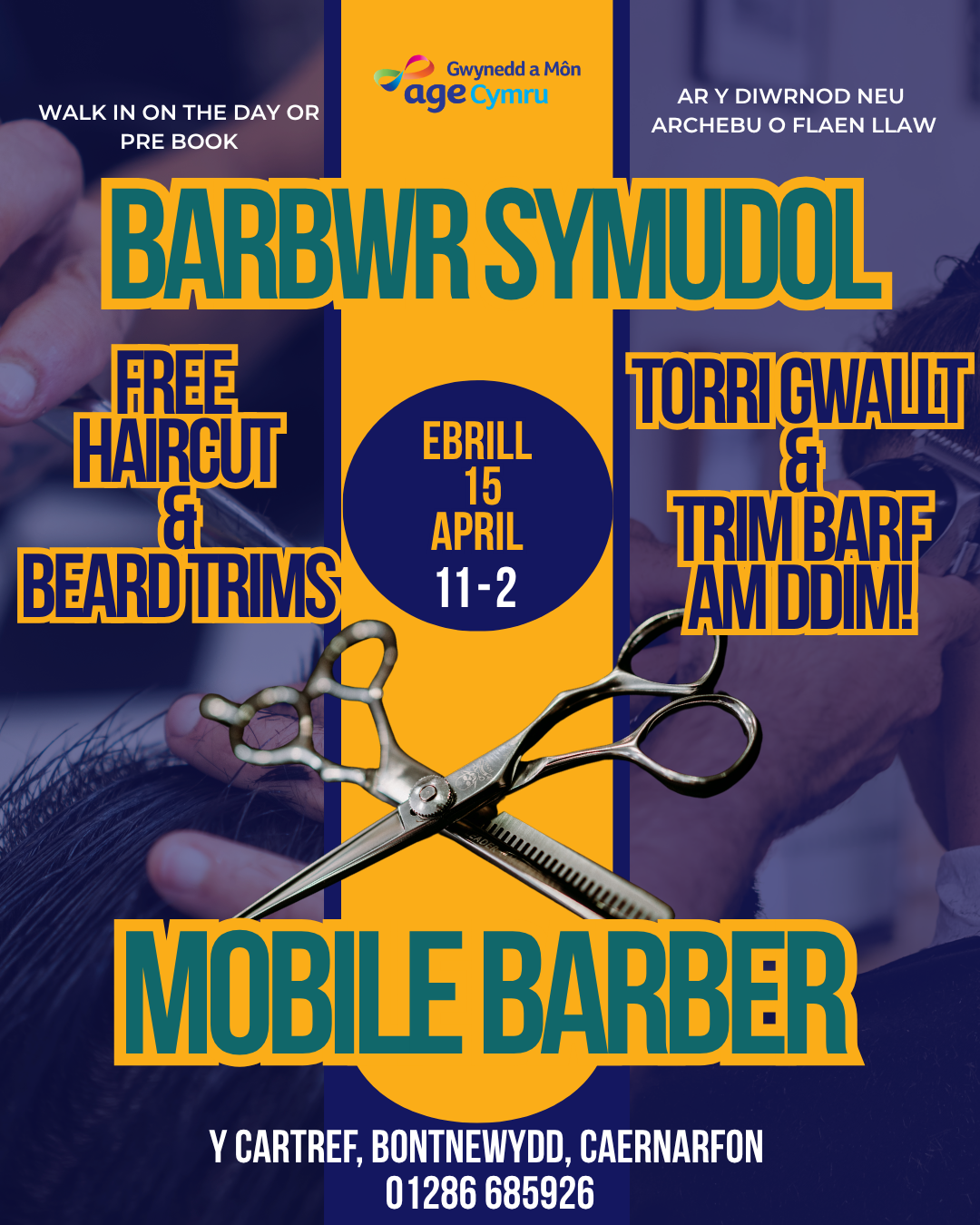 I archebu lle ffoniwch 01286 685913 neu e-bost ar - delyth@acgm.co.uk