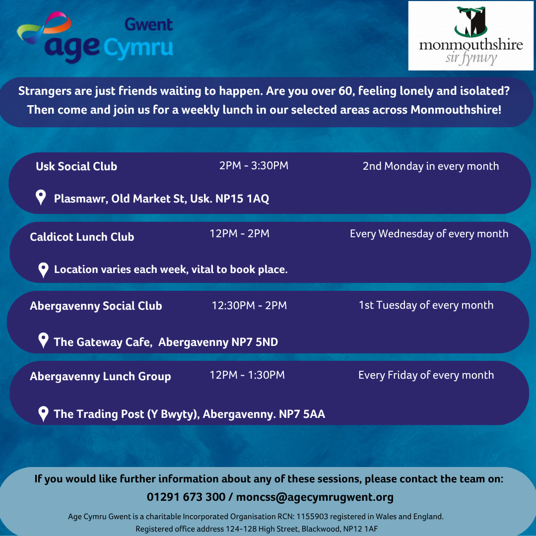 We always welcome more friendly faces joining us at our social events. For full details, please email moncss@agecymrugwent.org or call 01291 673300