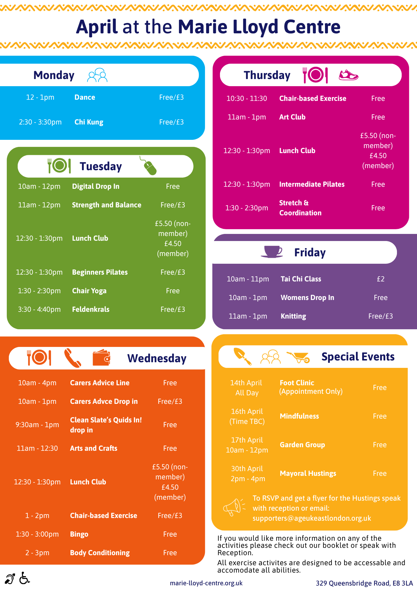 The Marie Lloyd Centre is home to Age UK East London, Hackney Carers, Choice in Hackney, The Huddleston Centre, The Holly Street Luncheon Club, MRS Independent Living and SWERVE Harm Reduction Hub.