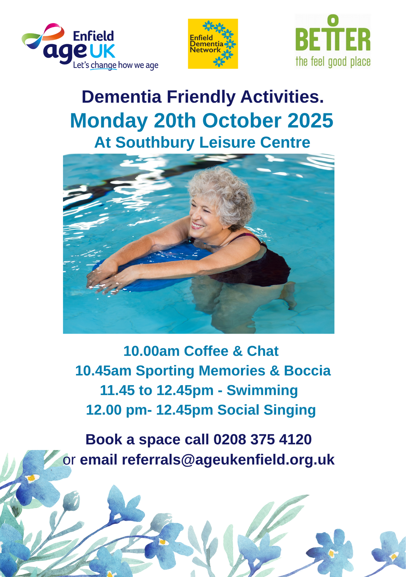 On 20th October at Southbury Leisure Centre AUKE will be running in partnership with BETTER a number of dementia friendly activities including swimming, sporting memories, social singing - and of course, there will be coffee and lots of chat.