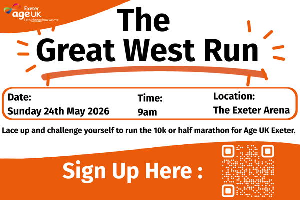Age UK Exeter is lacing up and taking part in this years Great West Run, We are looking for people to raise money and to run a half marathon, 10k or walk the community mile with our CEO. Every mile you run and every pound you raise will help us deliver essential services for older people in our community - combating loneliness and keeping Exeter’s older residents connected and supported.