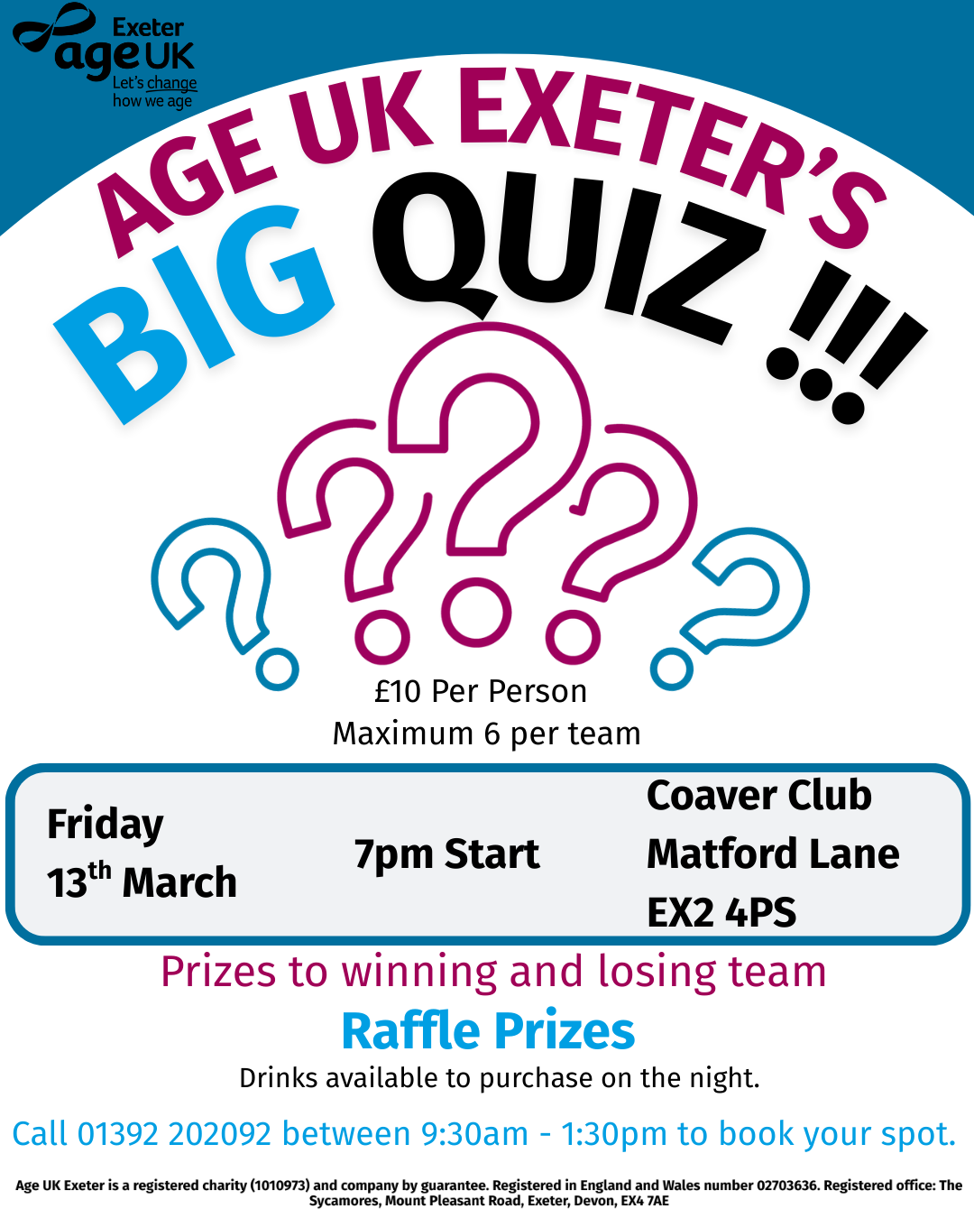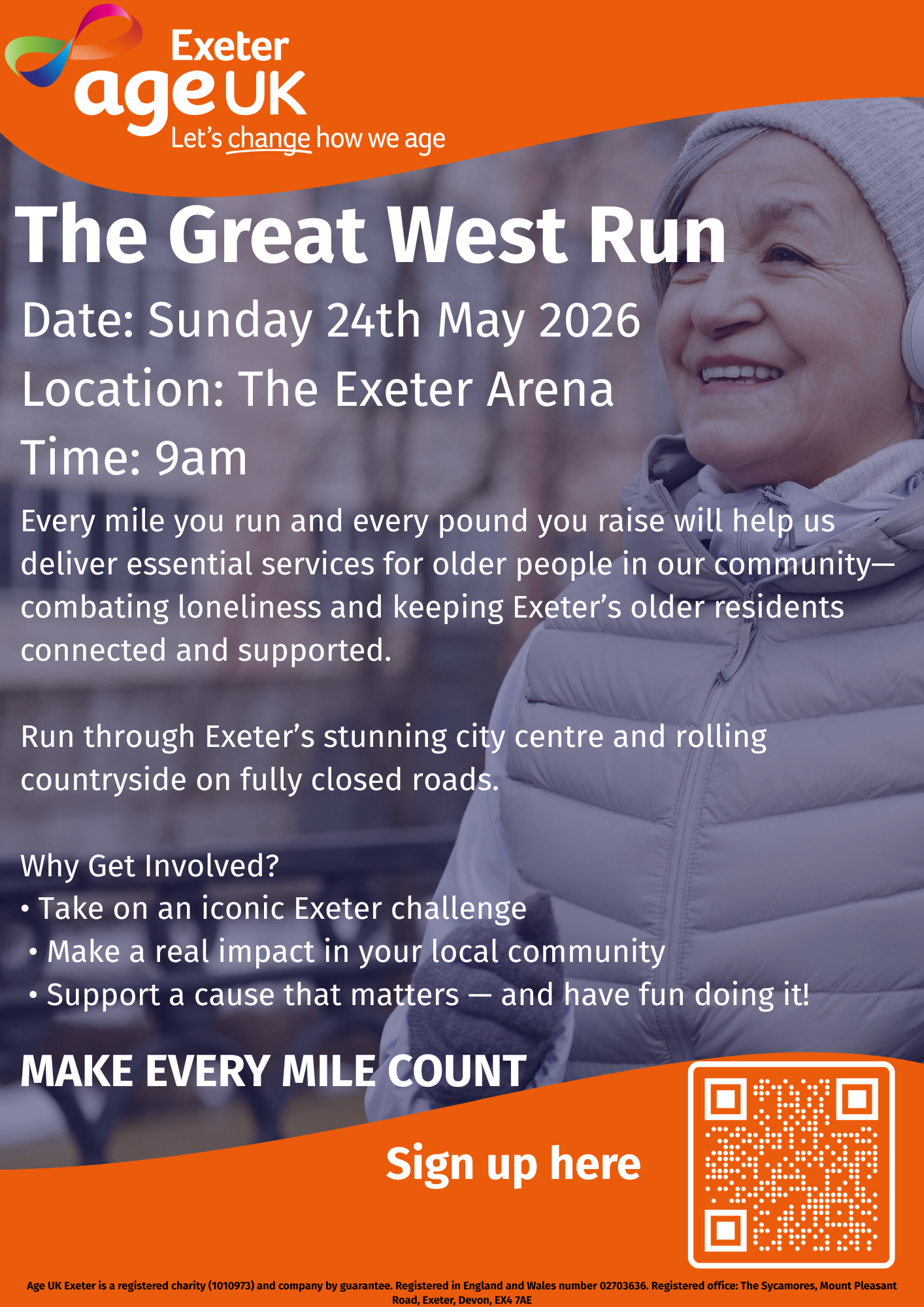 There are lots of ways you can get involved and help to raise valuable funds for Age UK Exeter.