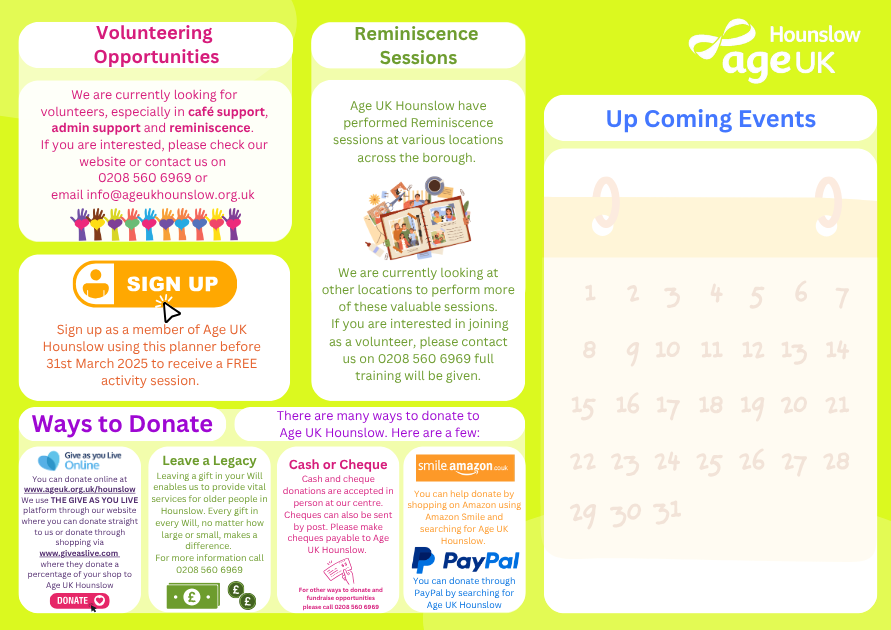 Our Activity Planner is updated regularly, so there’s always something new to look forward to. Most sessions don’t require booking. Just come along, join in, and be part of the community, with payment taken on the day where applicable.