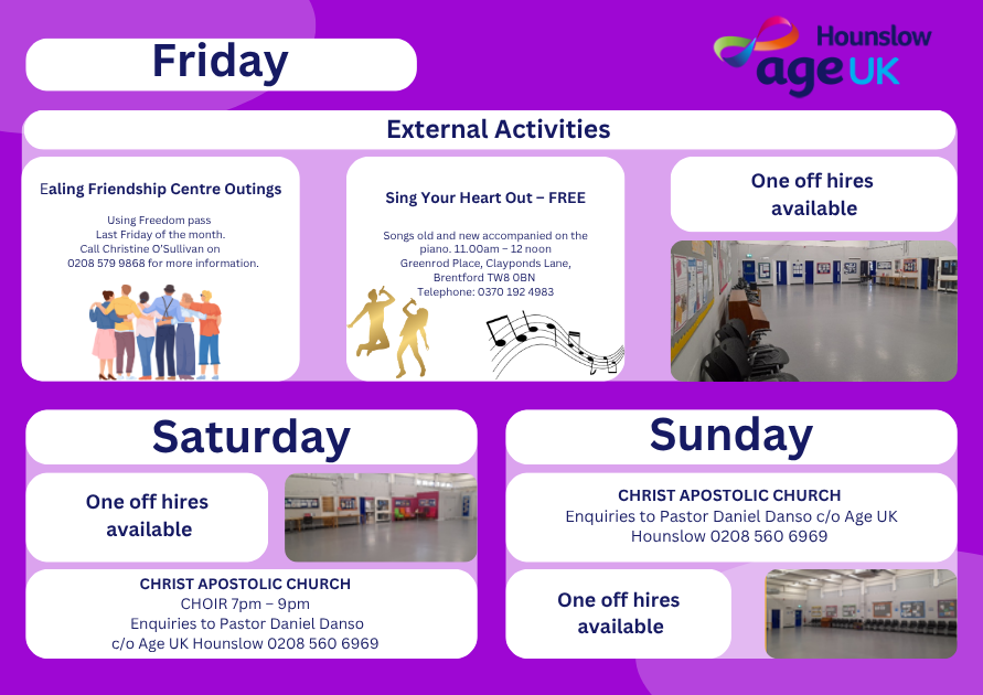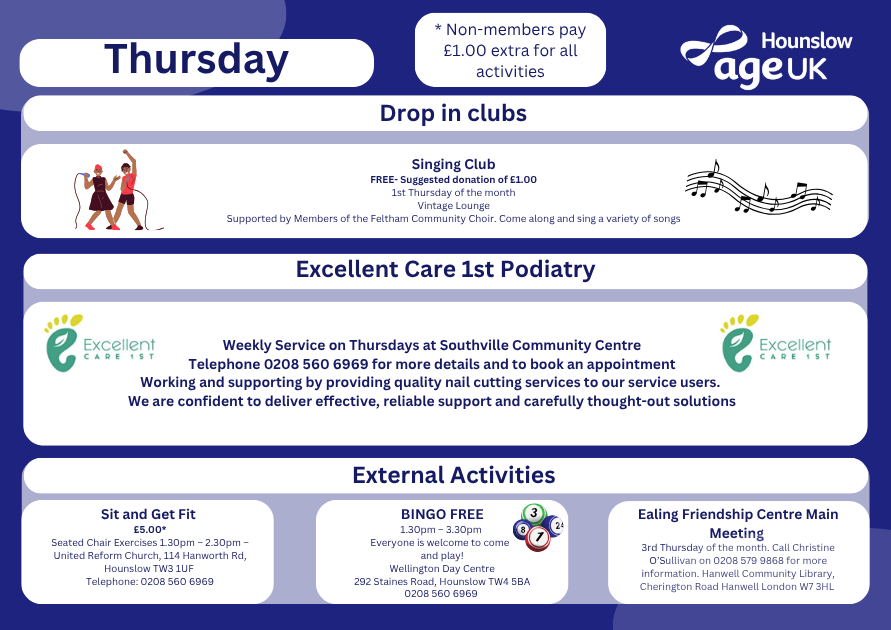 We’re proud to offer a friendly and inclusive programme of activities, designed so everyone can feel welcome, get involved and enjoy their time with us. Whether you’re looking to stay active, try something new or simply socialise, there’s something for everyone.
