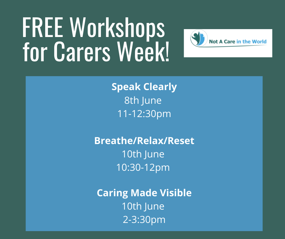 Not A Care In The World are running some FREE fantastic resilience training workshops as part of this year's Carers Week. These workshops will take place via Zoom and are open to carers across the country.