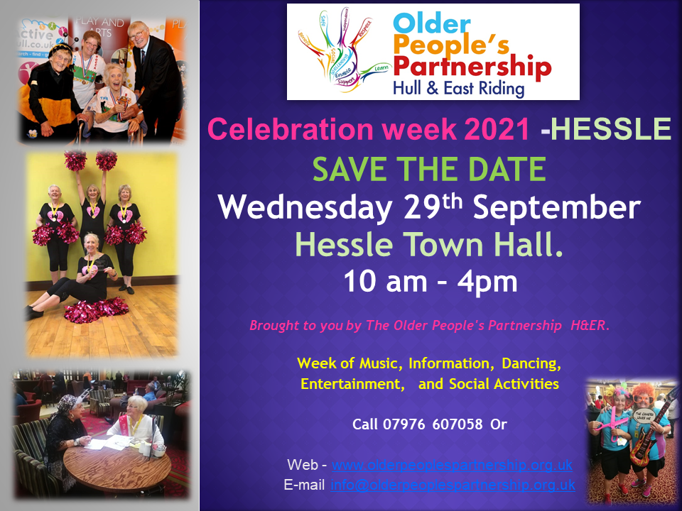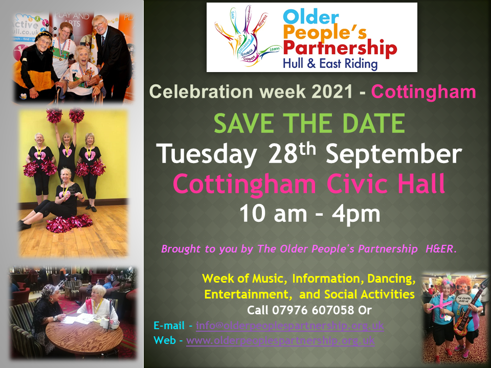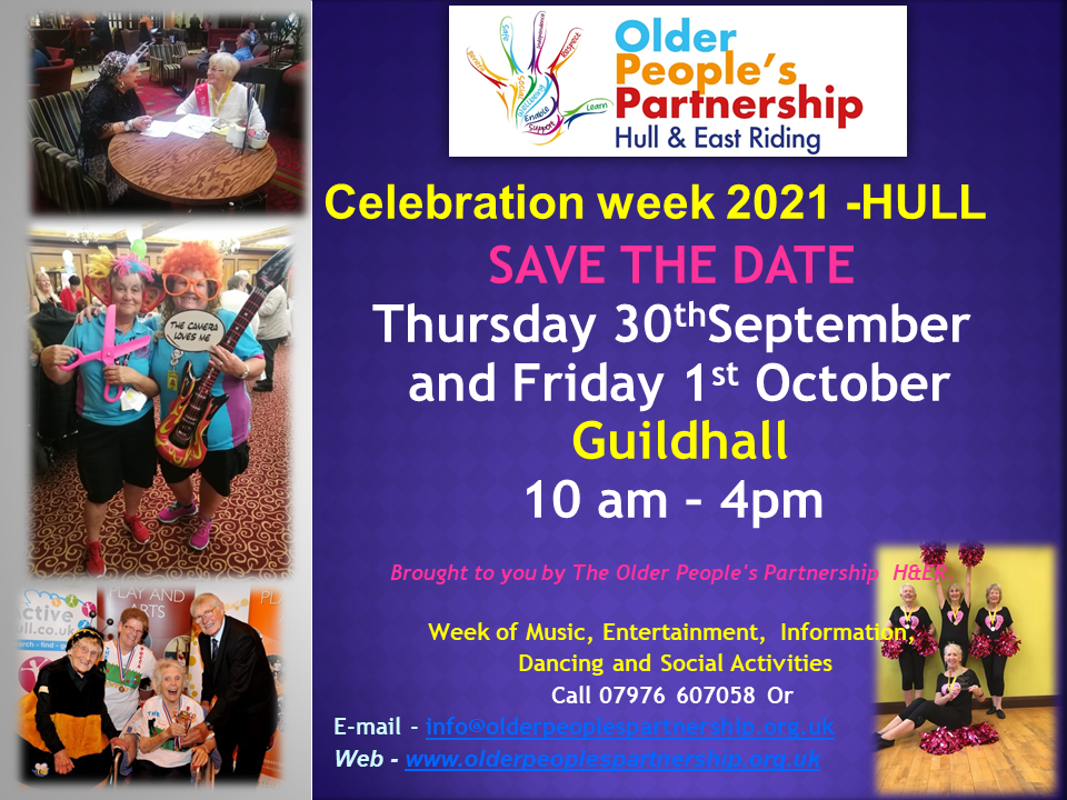 The Older Peoples Partnership Hull & East Riding are hosting their annual Celebration Of Older People Week 28th Sept-1st Oct across 3 local locations.