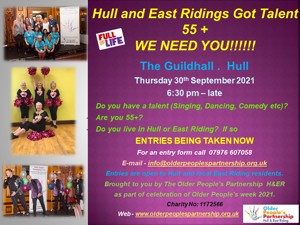 Are you aged over 55? Live in Hull or the East Riding? Do you have a talent whether it is singing, dancing, or comedy? Then WE NEED YOU!