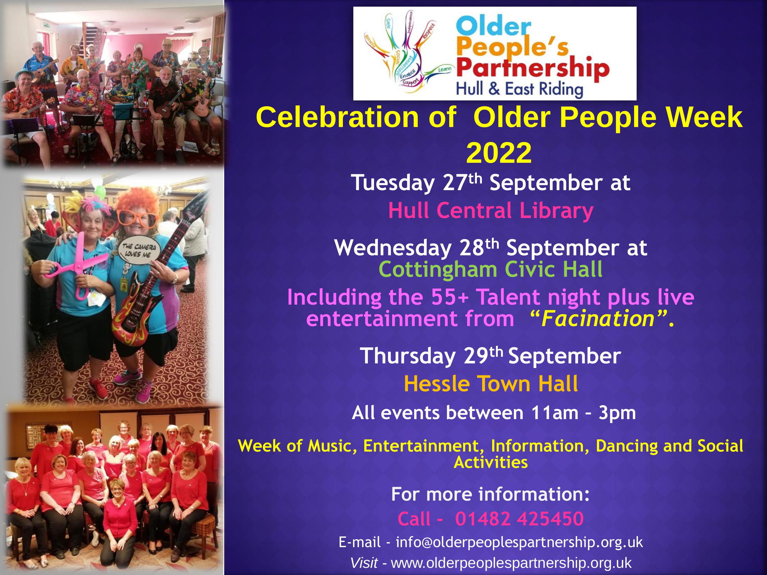 The Older Peoples Partnership Hull & East Riding are hosting their annual Celebration Of Older People Week