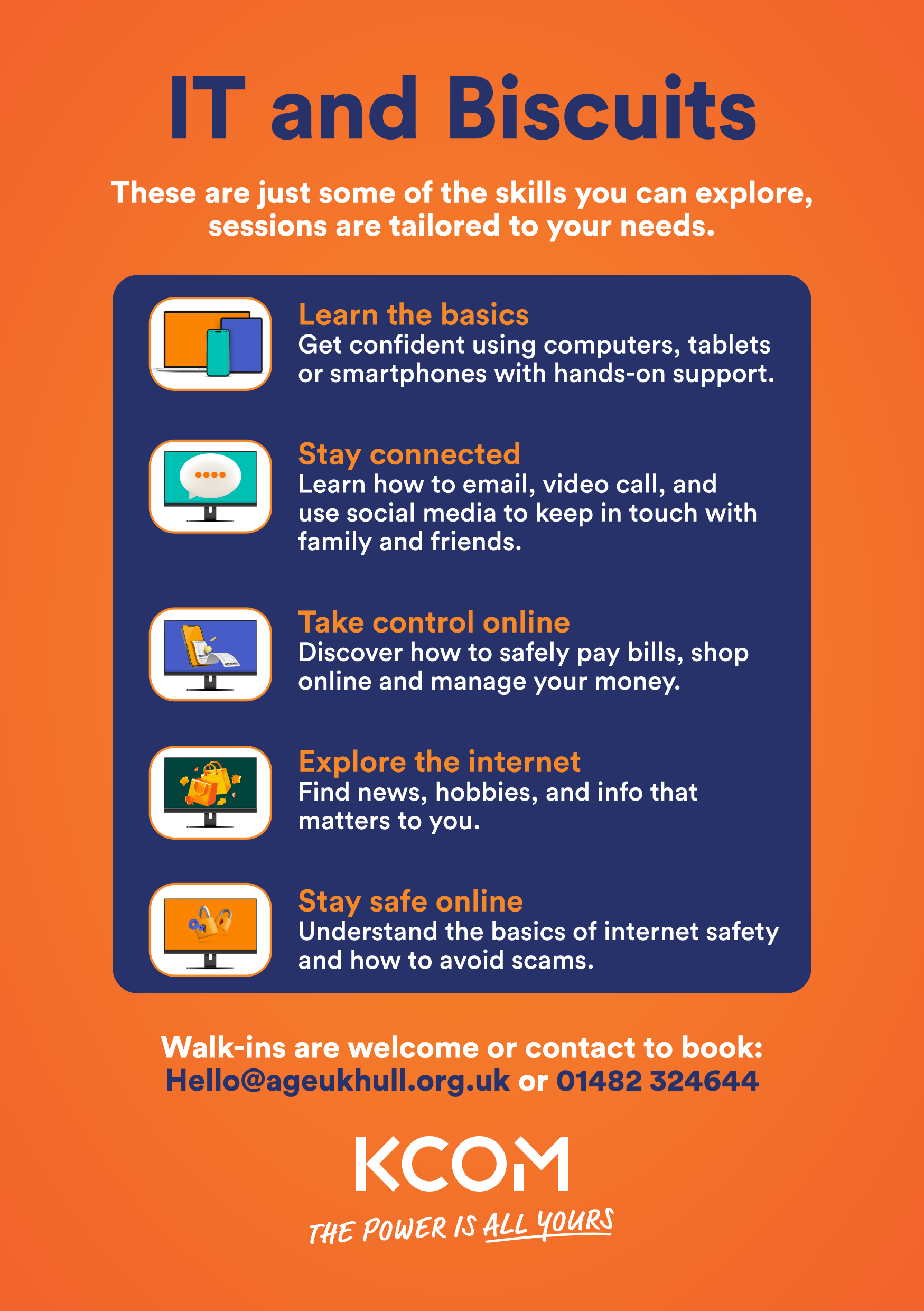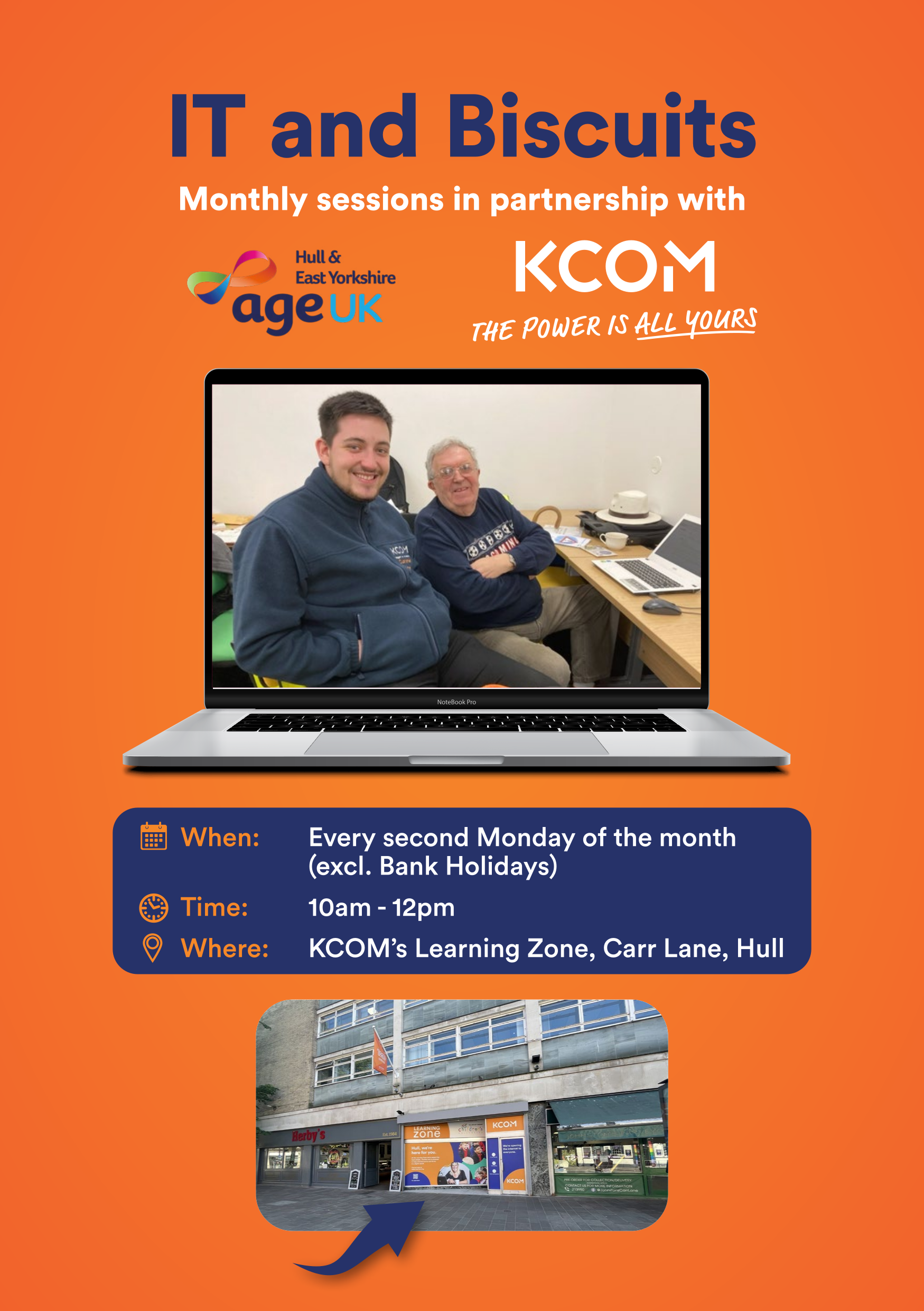 Our IT & Biscuits sessions in partnership with KCOM are a great place to meet new people, learn new skills and get connected.
