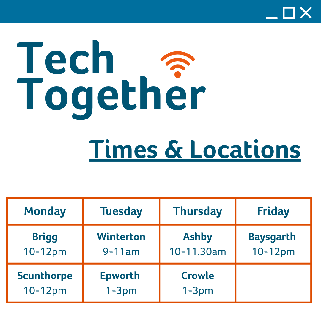 We are working together with North Lincolnshire Council to begin Tech Together, a set of free digital skills sessions designed to help older people build confidence in using technology for their day-to-day needs.