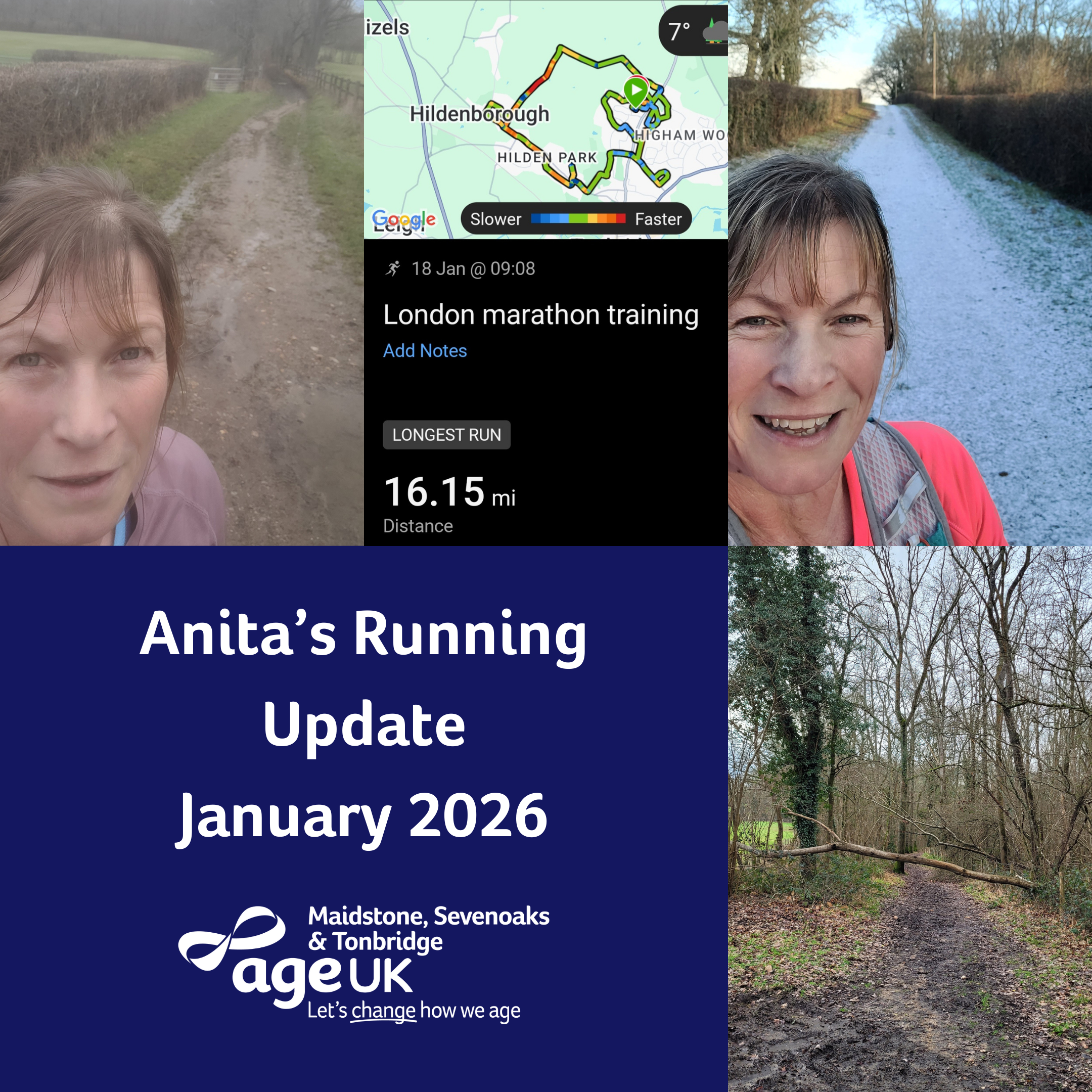 As November wraps up, I’ve completed 102 miles of marathon training, all in support of Age UK Maidstone, Sevenoaks & Tonbridge. I’m thrilled to have raised £779 so far – thank you to everyone who has supported my journey. Training is going well, and the weather has been kind so far! December sees the mileage increase again as we head into 2026.