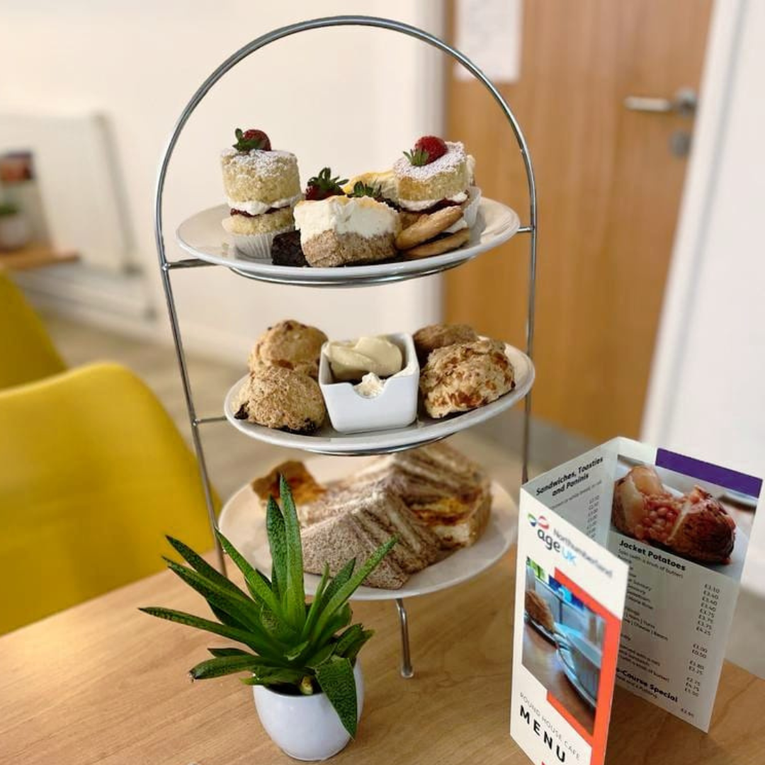 We’ve got breakfast options, main meal options, sandwiches, toasties, paninis, jacket potatoes and soup of the day. We also do special afternoon teas for special occasions filled with tasty and delicious treats.