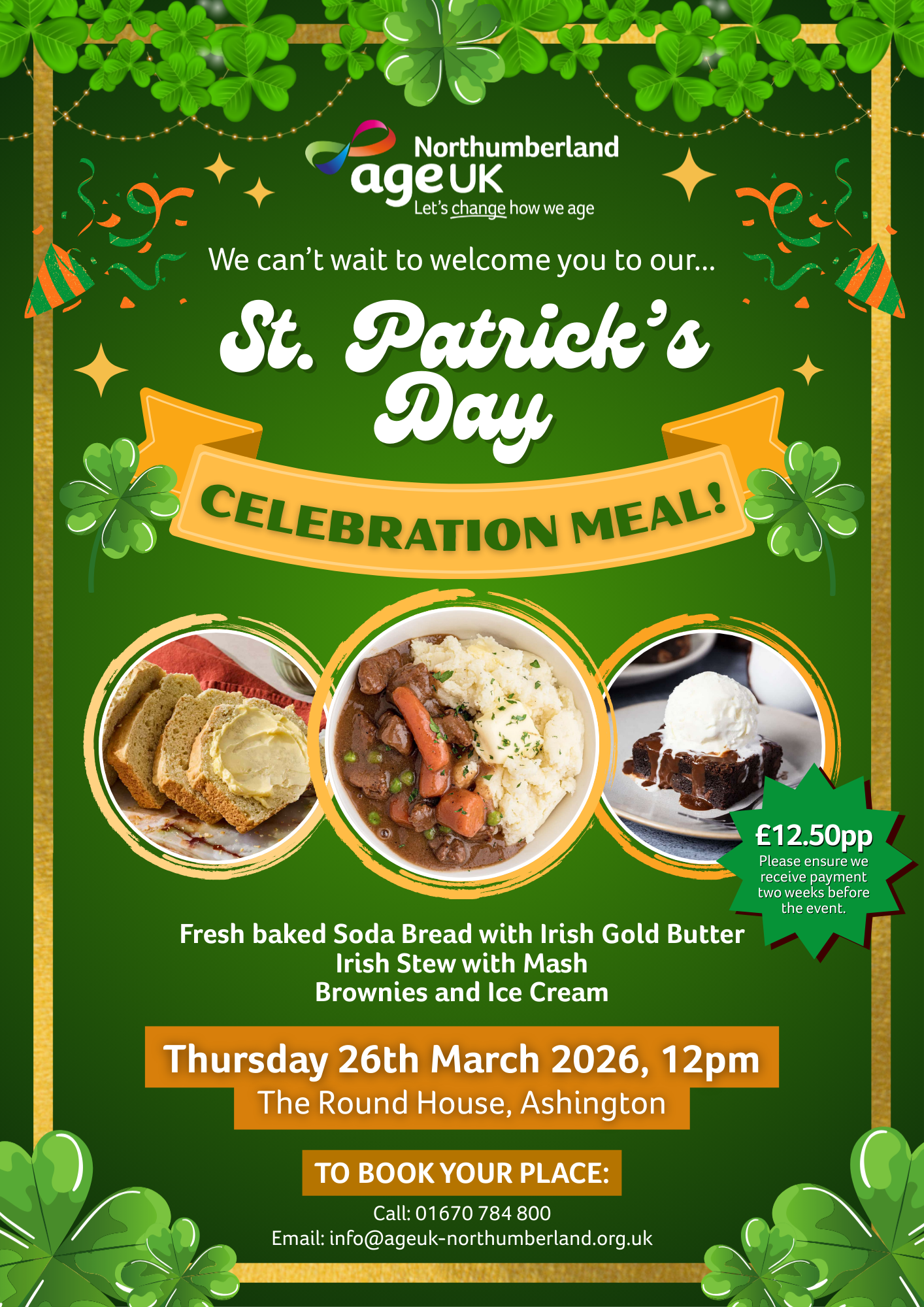 Do get in touch to book your place by contacting our Reception team on 01670 784 800 or email info@ageuk-northumberland.org.uk. Please ensure we recieve payment two weeks before the event.