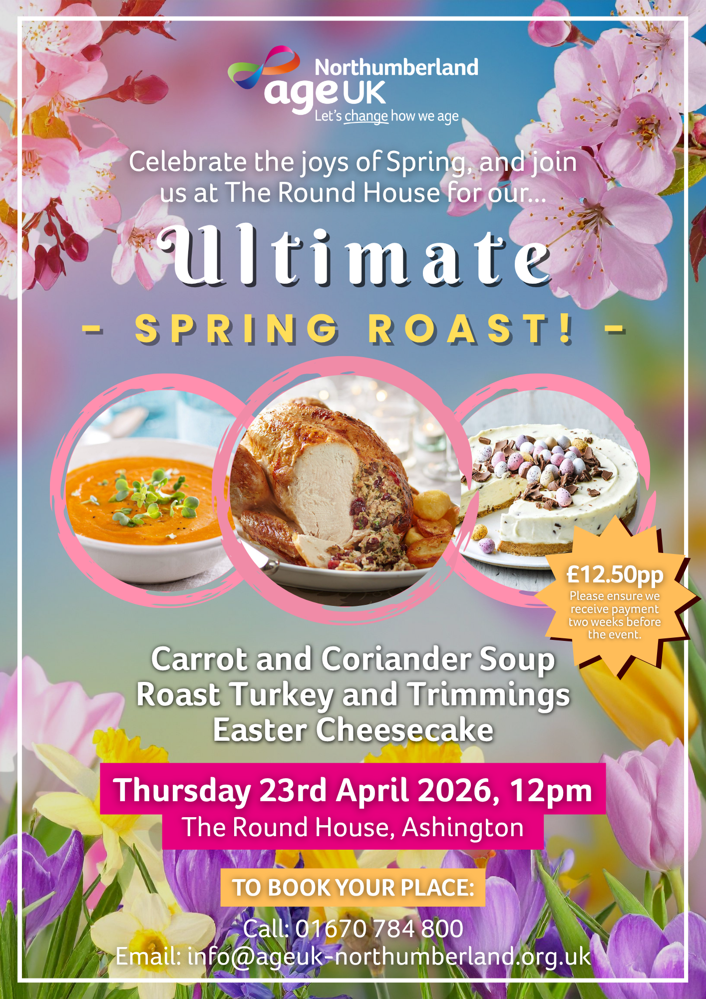 Do get in touch to book your place by contacting our Reception team on 01670 784 800 or email info@ageuk-northumberland.org.uk. Please ensure we recieve payment two weeks before the event.