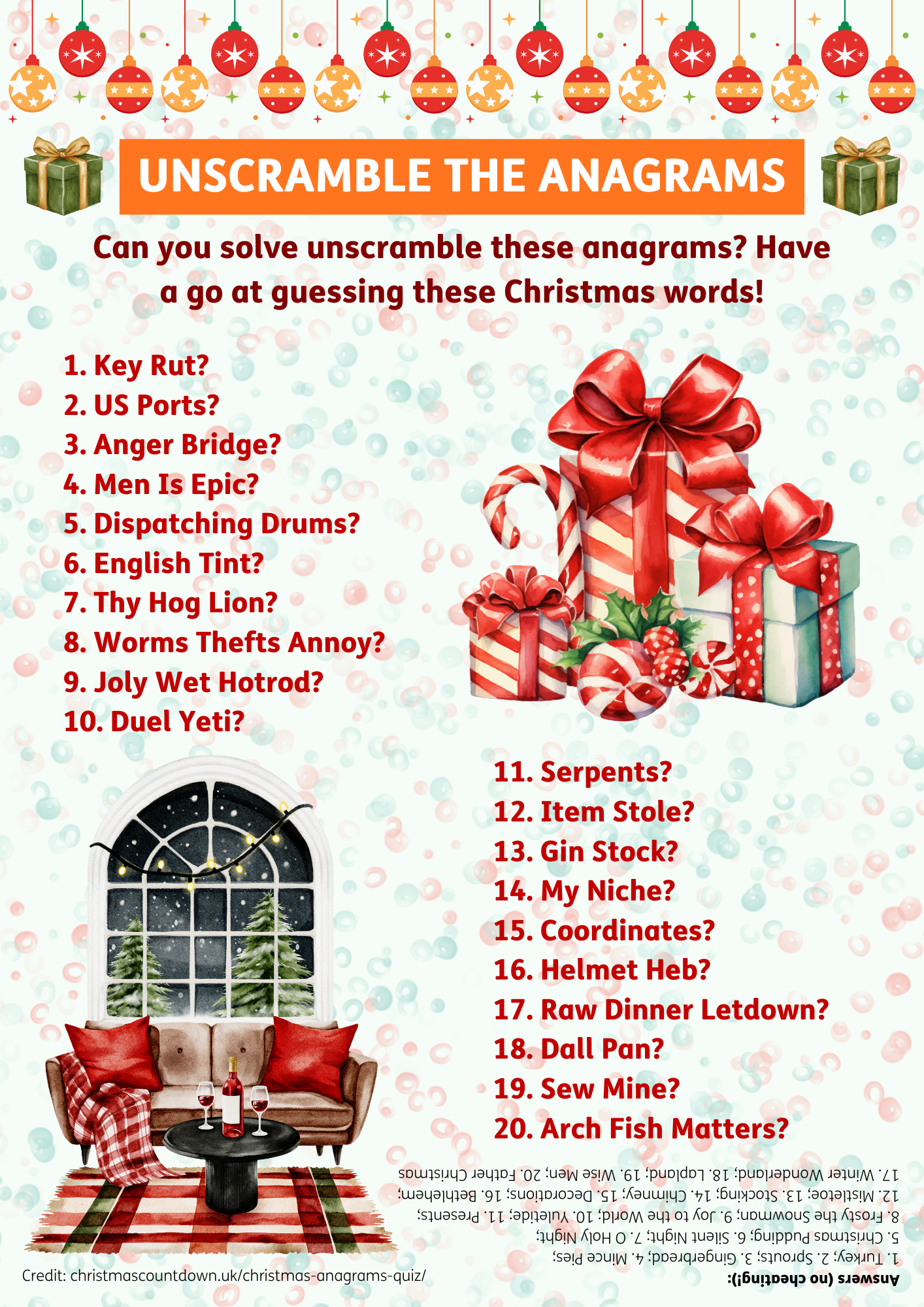It’s day ten of our Winter Warmth advent calendar! And today, we bring you a set of anagrams for you to unscramble. Look at each of the anagrams, and have a go at uncovering the Christmas related words.