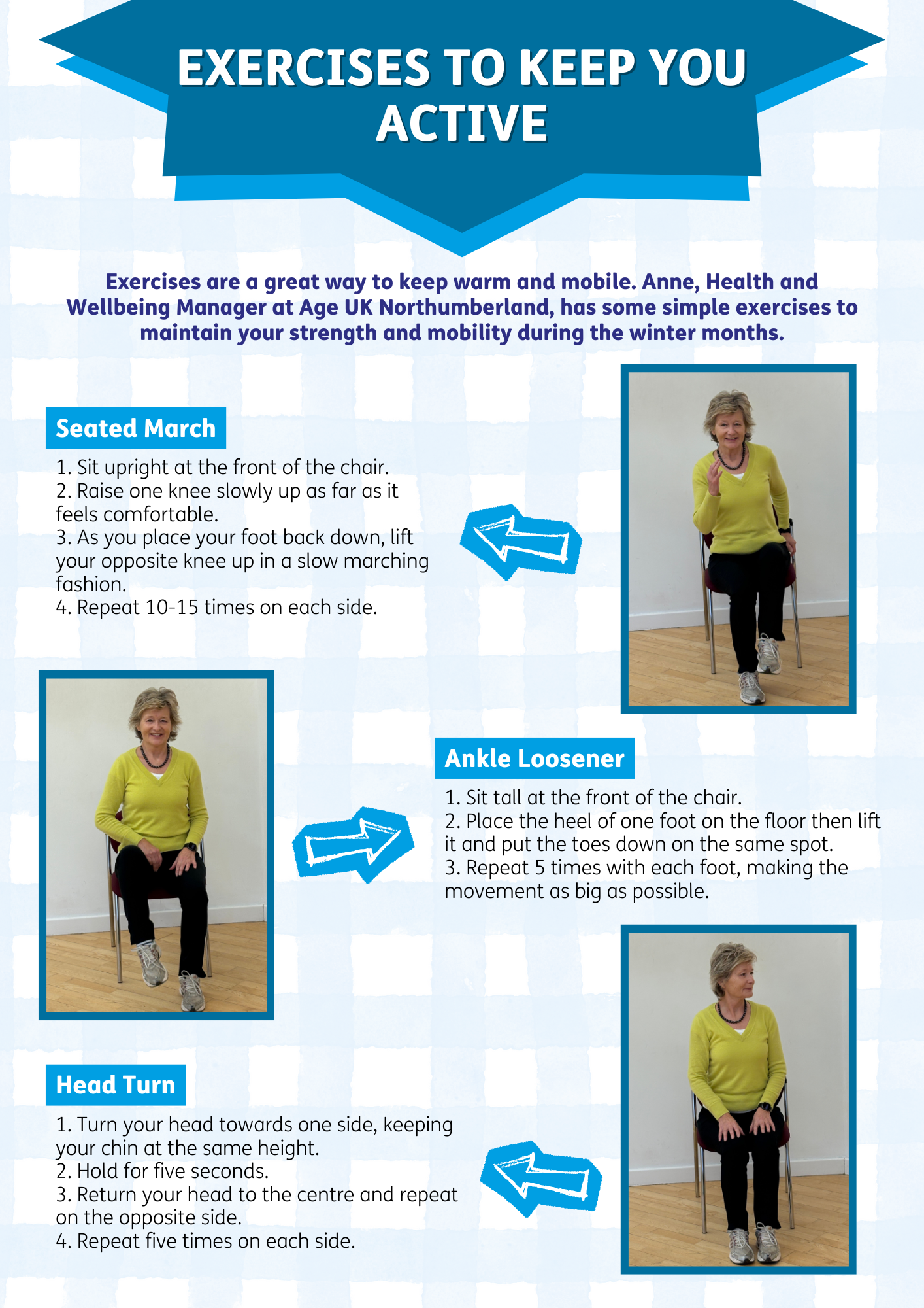 Why not have a go, and click the link to view some simple exercises set by Anne, our Health and Wellbeing Manager.