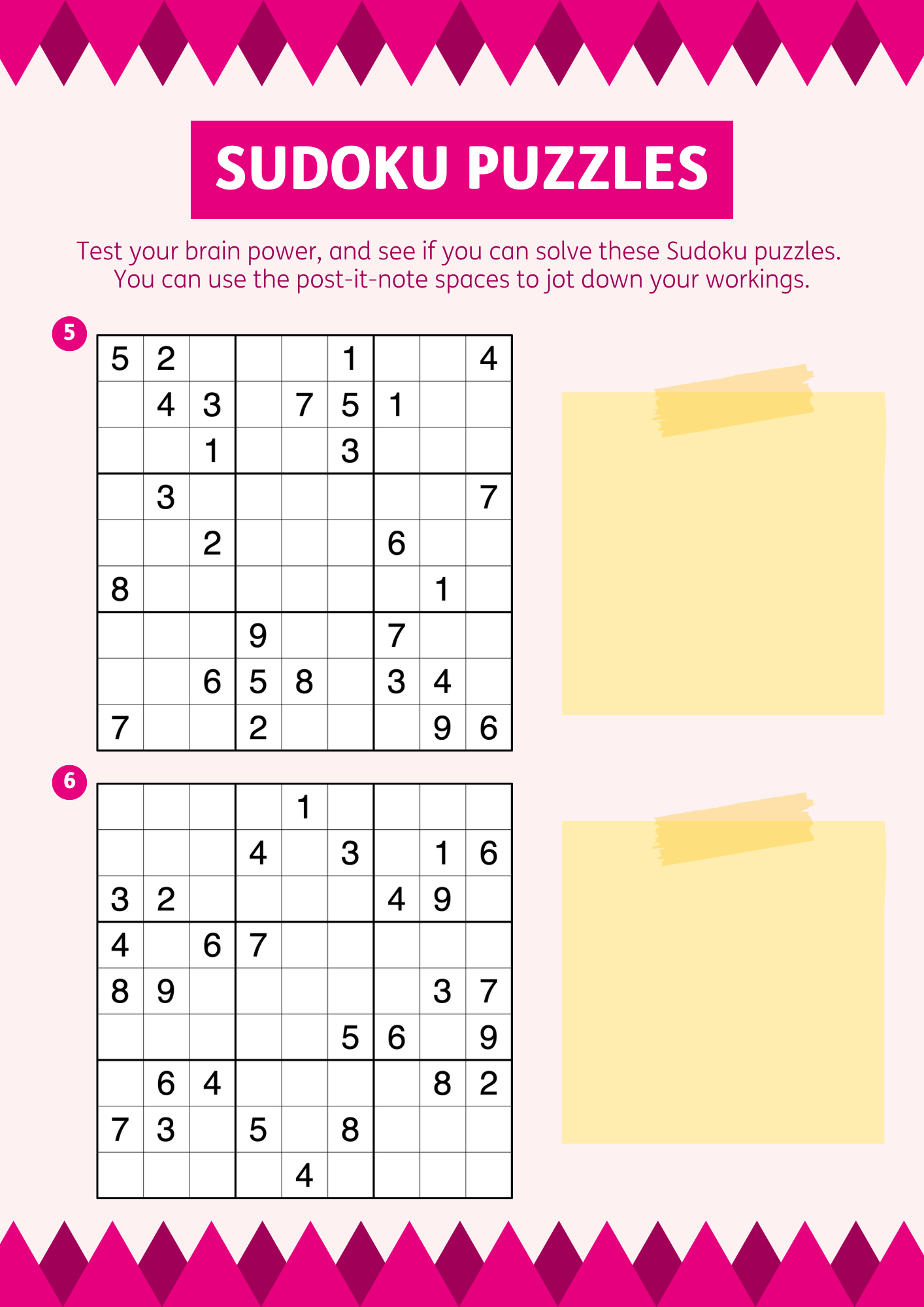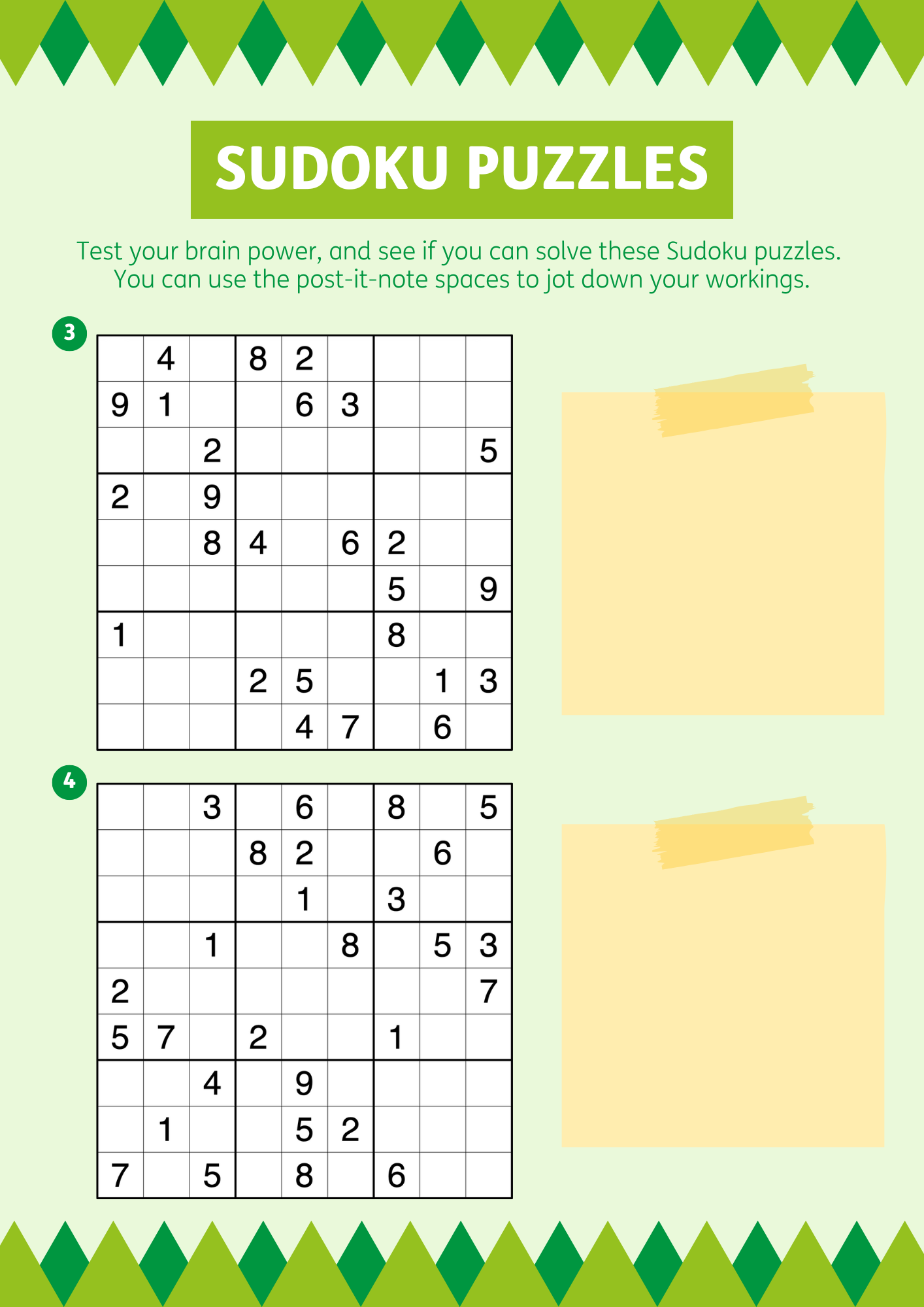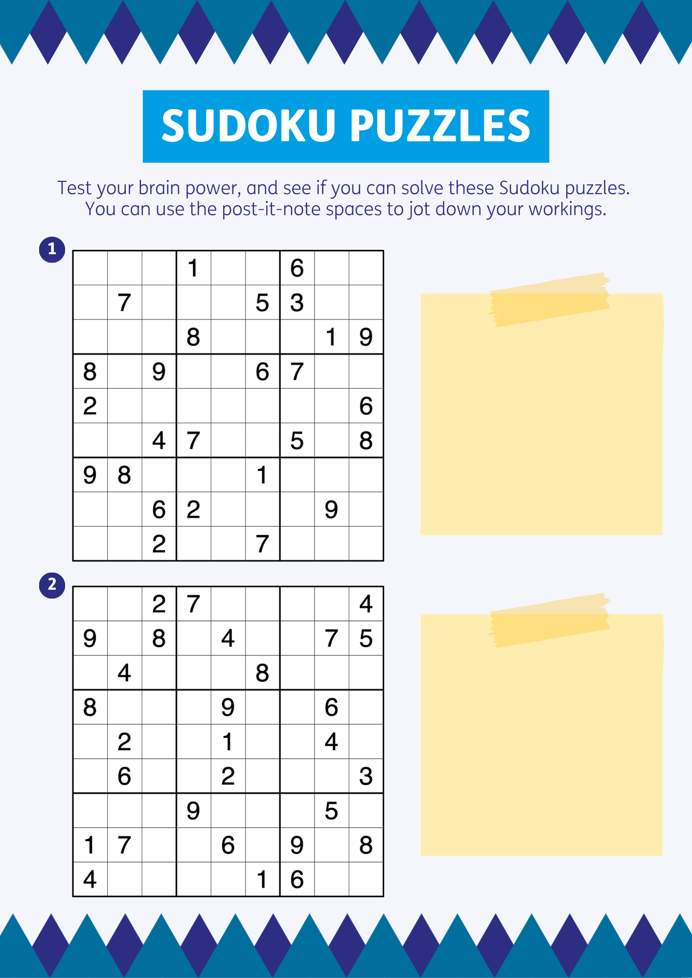 Today’s activity is another set of Sudoku puzzles! Test your brain power, and see if you can solve them.