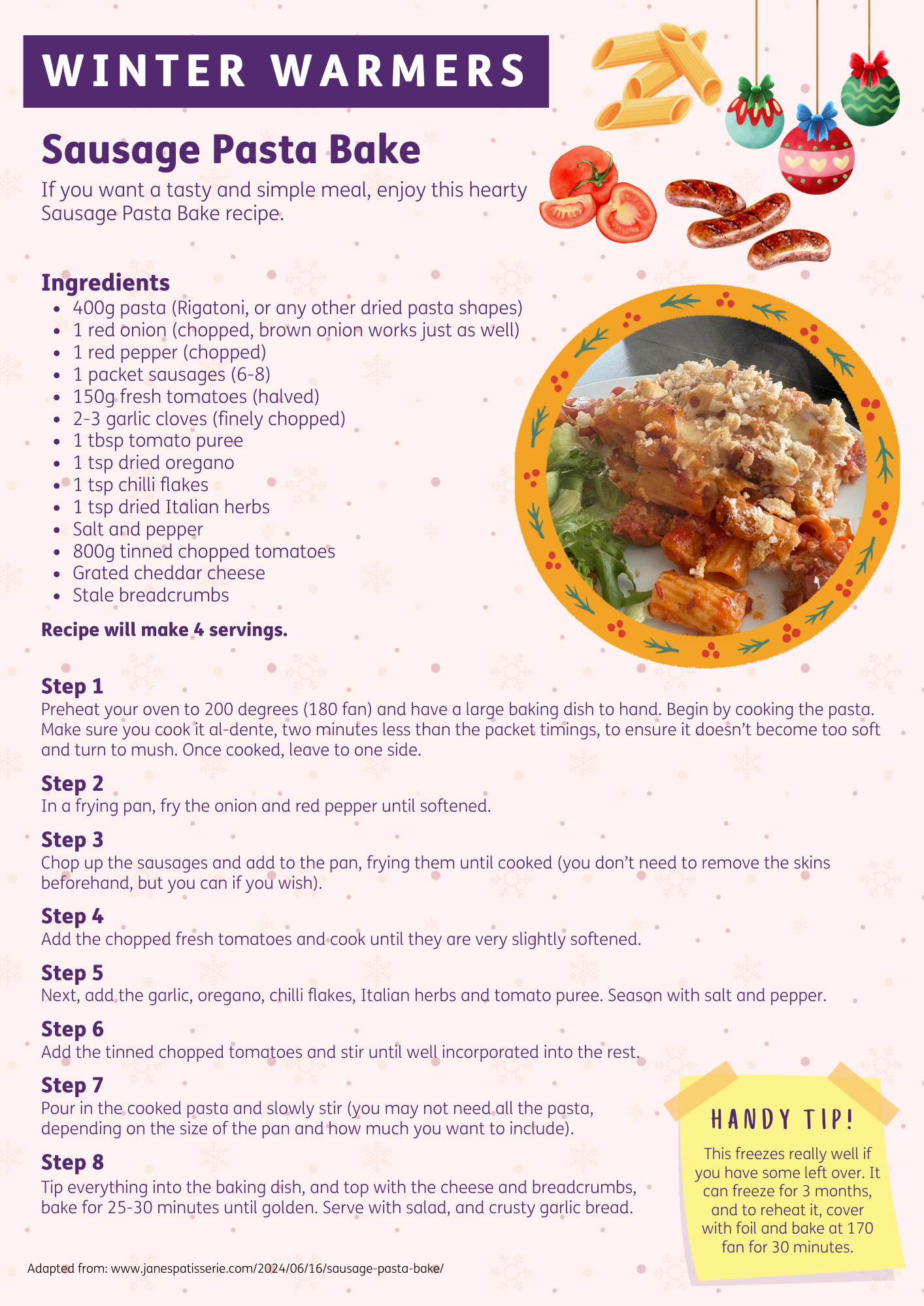 Day 7 - Winter Warmers: Sausage Pasta Bake (link to download - PDF)