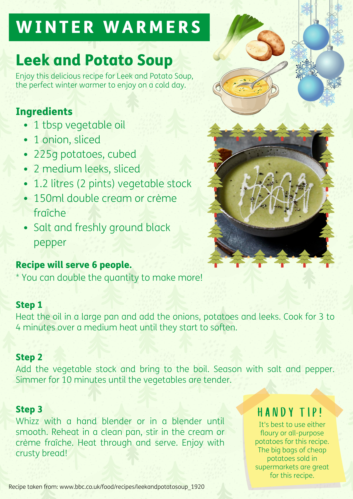 Day 2 - Winter Warmers: Leek and Potato Soup (link to download - PDF)