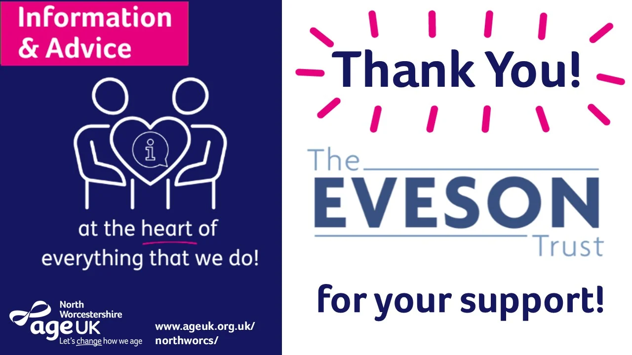 ‘On behalf our Board of Trustees and everybody connected with Age UK North Worcestershire I would like to express our gratitude to The Eveson Trust for awarding our charity a grant of £75,000 to support the running costs of our free Information & Advice service. The service is at the heart of everything that we do as a charity, helping to ensure that older people can access the support and benefits that they are entitled to, make informed decisions, exercise consumer choice and play a full part in their community, enabling them to live with dignity in later life. With continued high levels of demand and need within our communities, as a charity we too are experiencing the challenges of the current economic climate. Facing a funding shortfall for the I&A service, we applied to The Eveson Trust for support - thanks to the Trust’s incredible generosity our Information & Advice service can continue with certainty for the next 12 months, for which we are incredibly grateful’.
