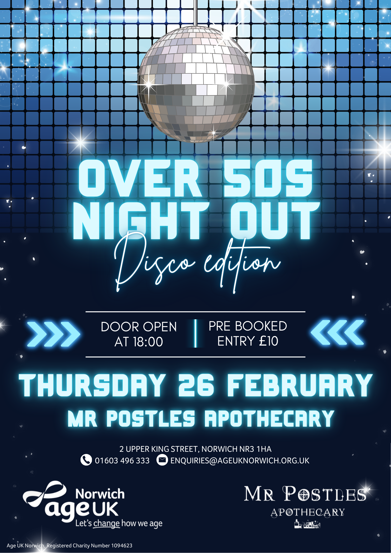 Whether you’re a familiar face or joining us for the first time, we’d love to welcome you for a fun-filled night of dancing, socialising and disco classics, all in support of Age UK Norwich.