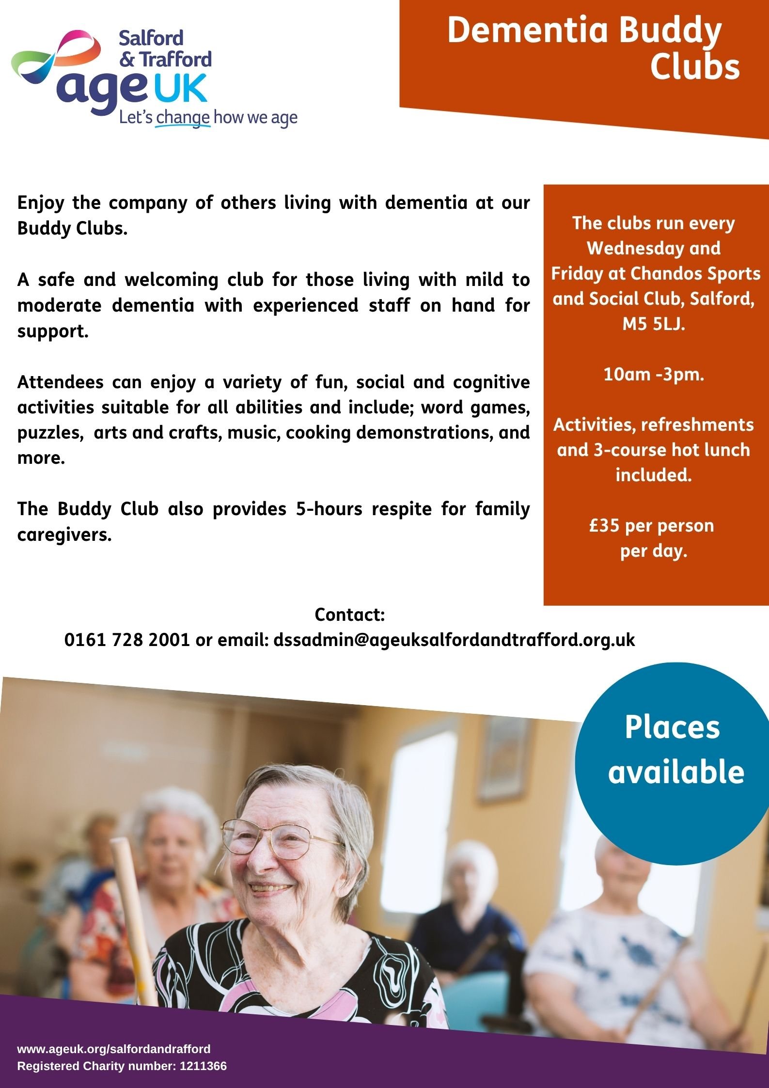 Enjoy the company of others at the Dementia Buddy Club. The clubs run every Wednesday and Friday.