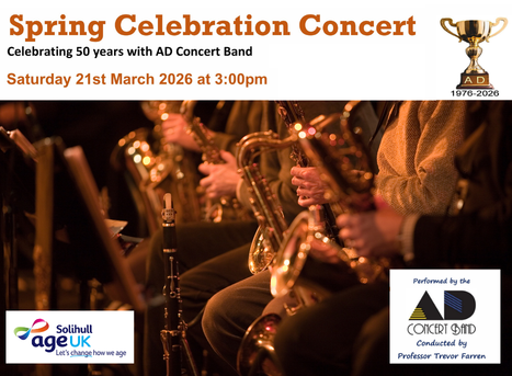 Celebrate 50 years of Solihull's symphonic wind band, AD Concert Band, with their Spring Celebration concert at the beautiful St Philip's Church in Dorridge on Saturday 21 March 2026.