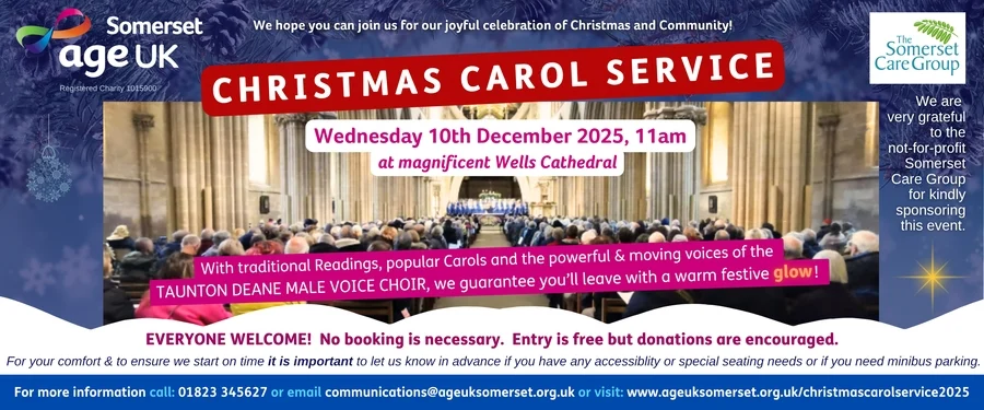 This uplifting event, kindly sponsored by Somerset Care Group, will feature a performance by the Taunton Deane Male Voice Choir and is open to everyone. It promises to be a morning filled with festive music, community spirit, and the joy of Christmas.