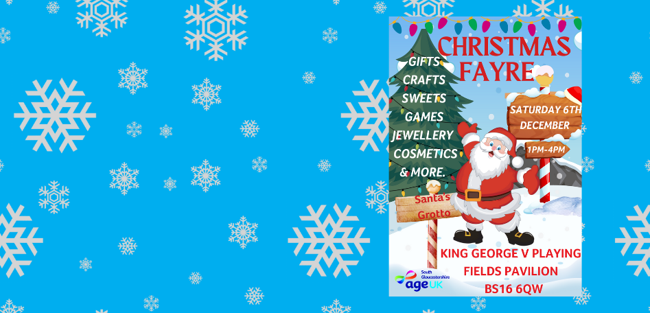Please join us from 1 pm on Saturday 6th December for the annual Age UK South Gloucestershire Christmas Fayre