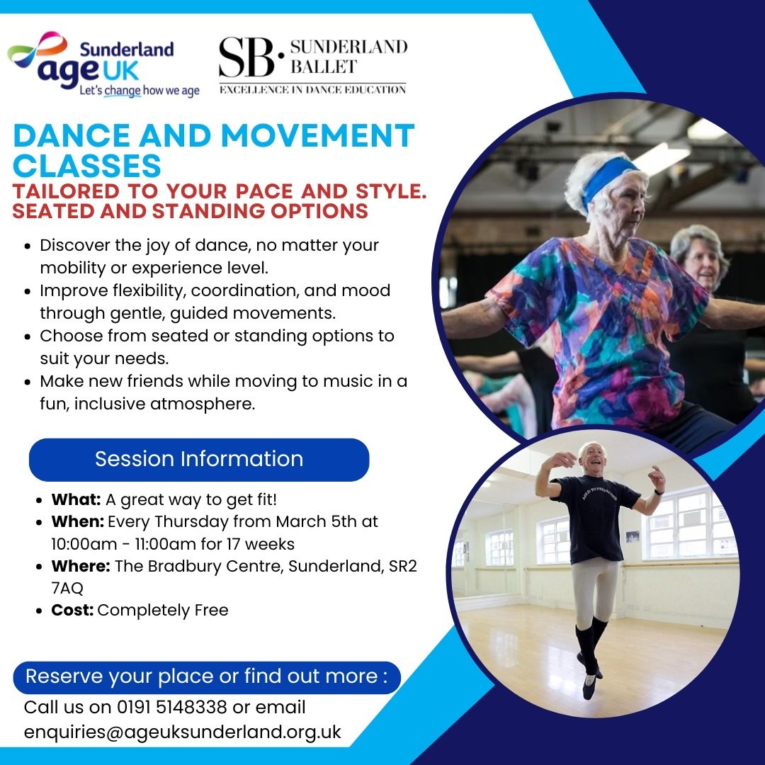 Looking for a fun, friendly way to get moving? Come along to our brandβnew Dance and Movement classes, delivered in partnership with Sunderland Ballet.