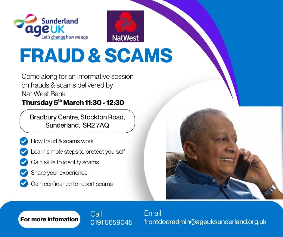 Worried about fraud or scams? Join us for a free, informative session delivered by NatWest Bank, designed to help you stay safe and informed.