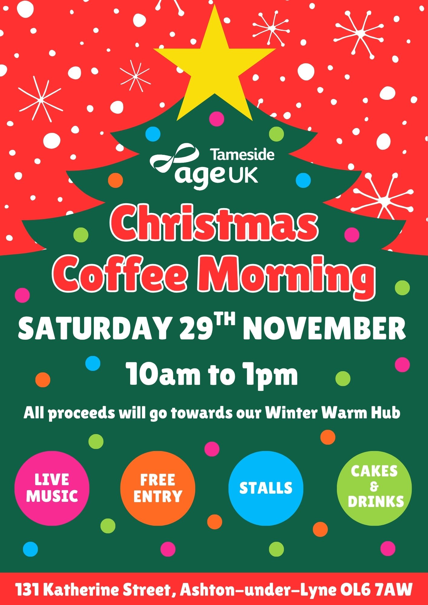 Following the success of last year's Christmas Coffee Morning fundraiser in support of our annual Winter Warm Hub for older people, we’re delighted to announce that the event will be returning on Saturday 29th November, from 10am to 1pm.