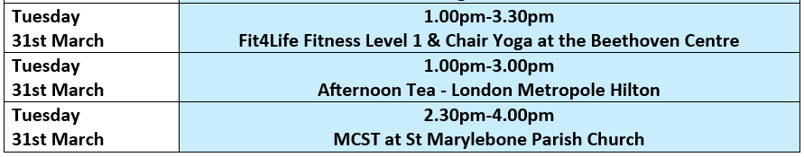 Tuesday 31st March 11.00am-12.30pm Coffee Morning at Lord’s Cricket Club, NW8 8QN